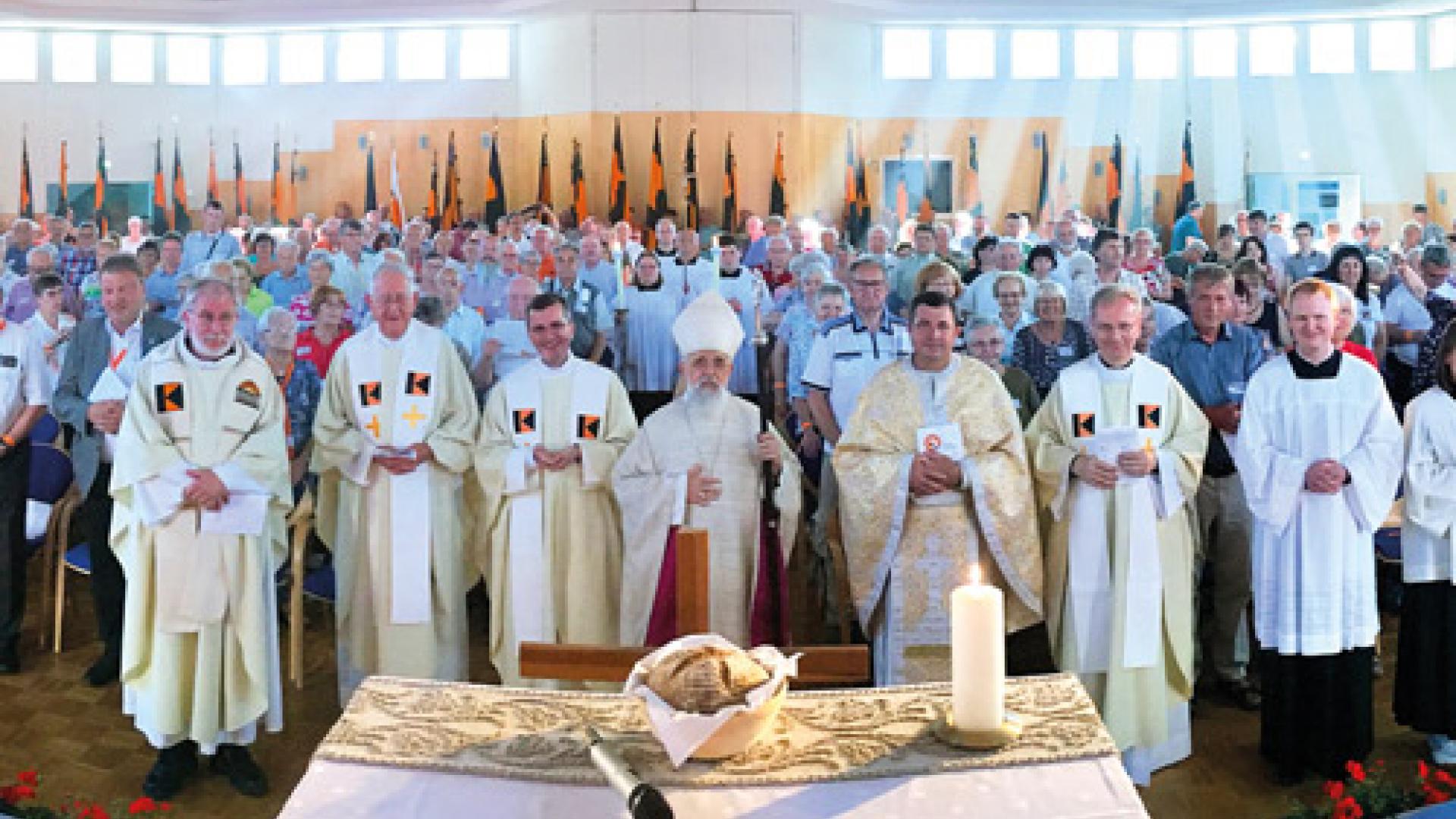| Eucharistiefeier am Ende des Regional-Kolpingtages in Hettstedt. Links von Bischof Gerhard Feige Generalpräses Monsignore Ottmar Dillenburg, rechts ein Gast aus Rumänien: Pfarrer George Radulesco | Foto: Bernhard Wolfrum |