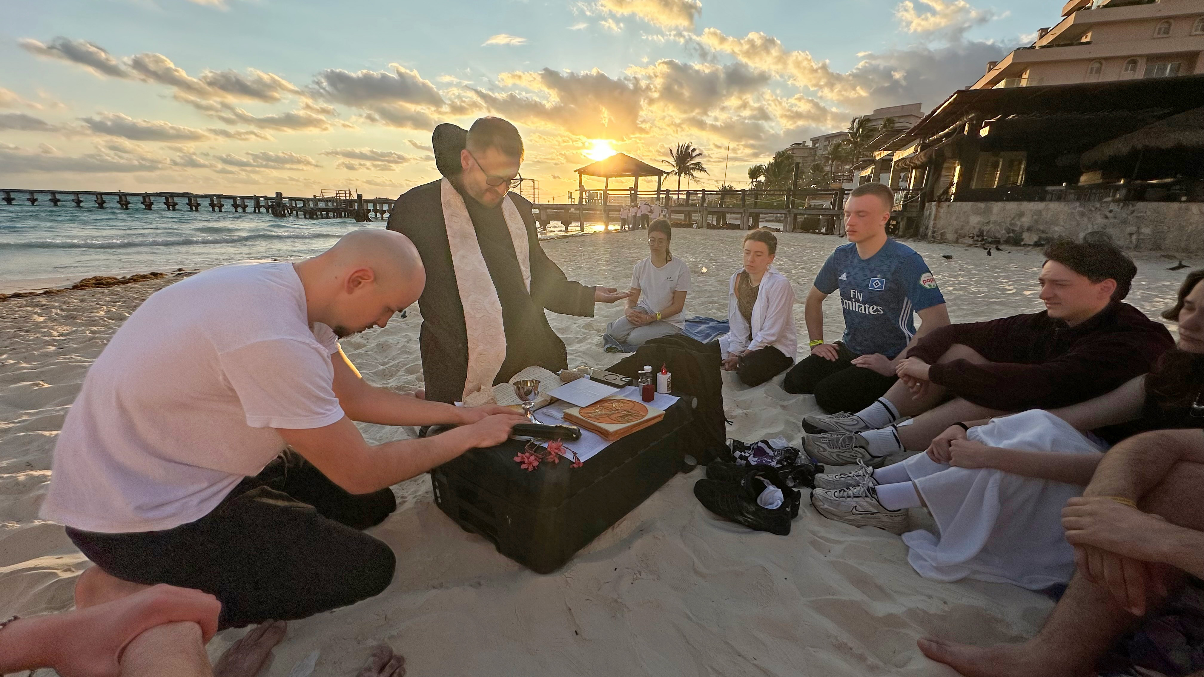 Am Strand von Cancún feierte die Gruppe einen Gottesdienst mit Bruder Lukas. Foto: Torben Knaak