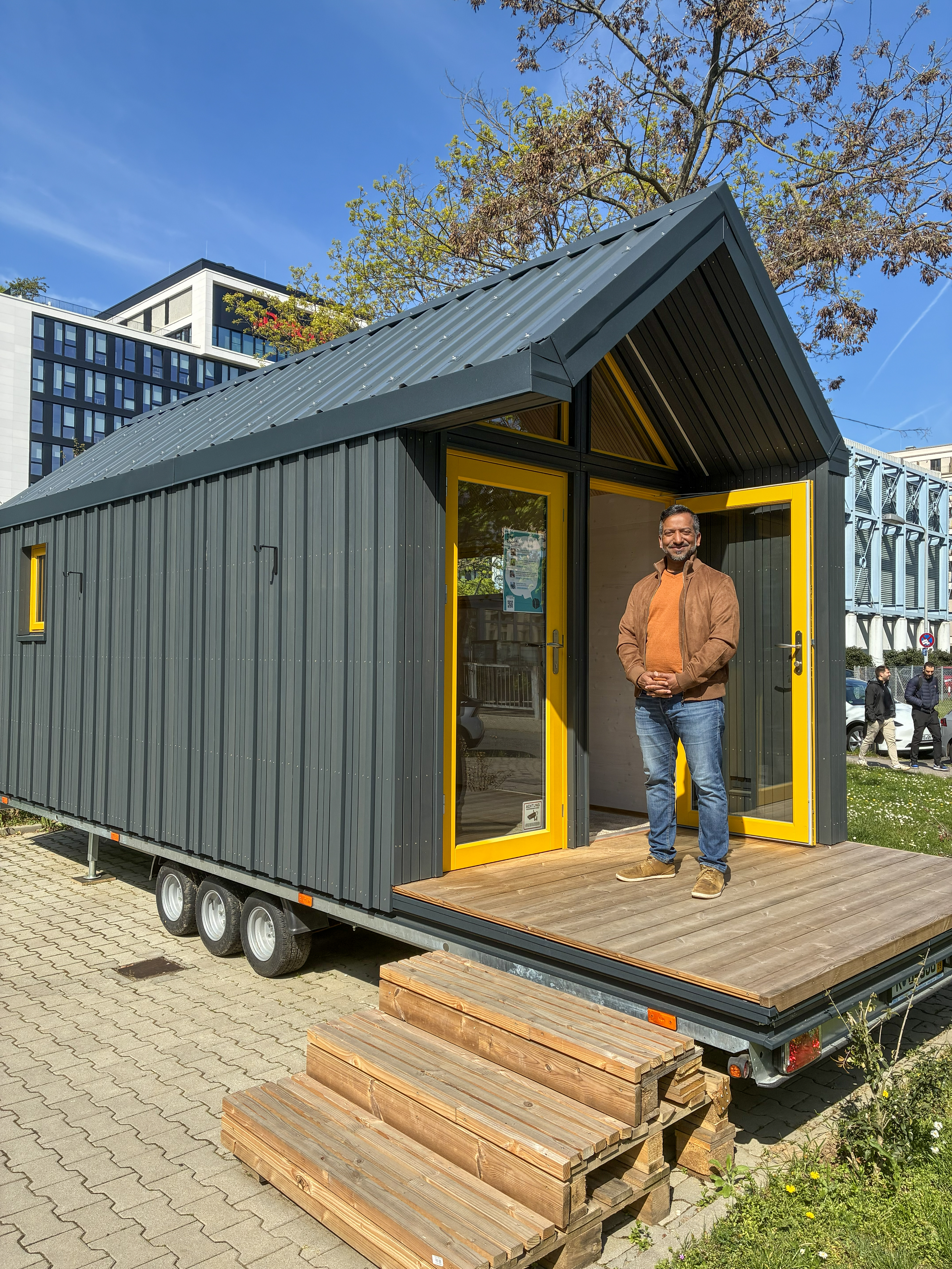 Ein wachsender Stadtteil mit bald 12 000 Einwohnern ohne kirchliche Strukturen. Wie kann Kirche im Lyoner Quartier in Frankfurt-Niederrad präsent und für die Menschen da sein? Das fragten sich Verantwortliche der Pfarrei St. Jakobus, zu dessen Bereich der Stadtteil gehört. Ein Neubau einer Kirche? Zu teuer und wahrscheinlich zu groß. Ein Büro anmieten? Kostet viel. So entstand die Idee der Tiny Church. Das Projekt wurde zusammen mit der evangelischen Kirche gestartet. „Alles andere macht heute keinen Sinn. Wir müssen hier als Kirche gemeinsam auftreten“, sagt der Soziologe George Kurumthottikal, der das Projekt leitet.