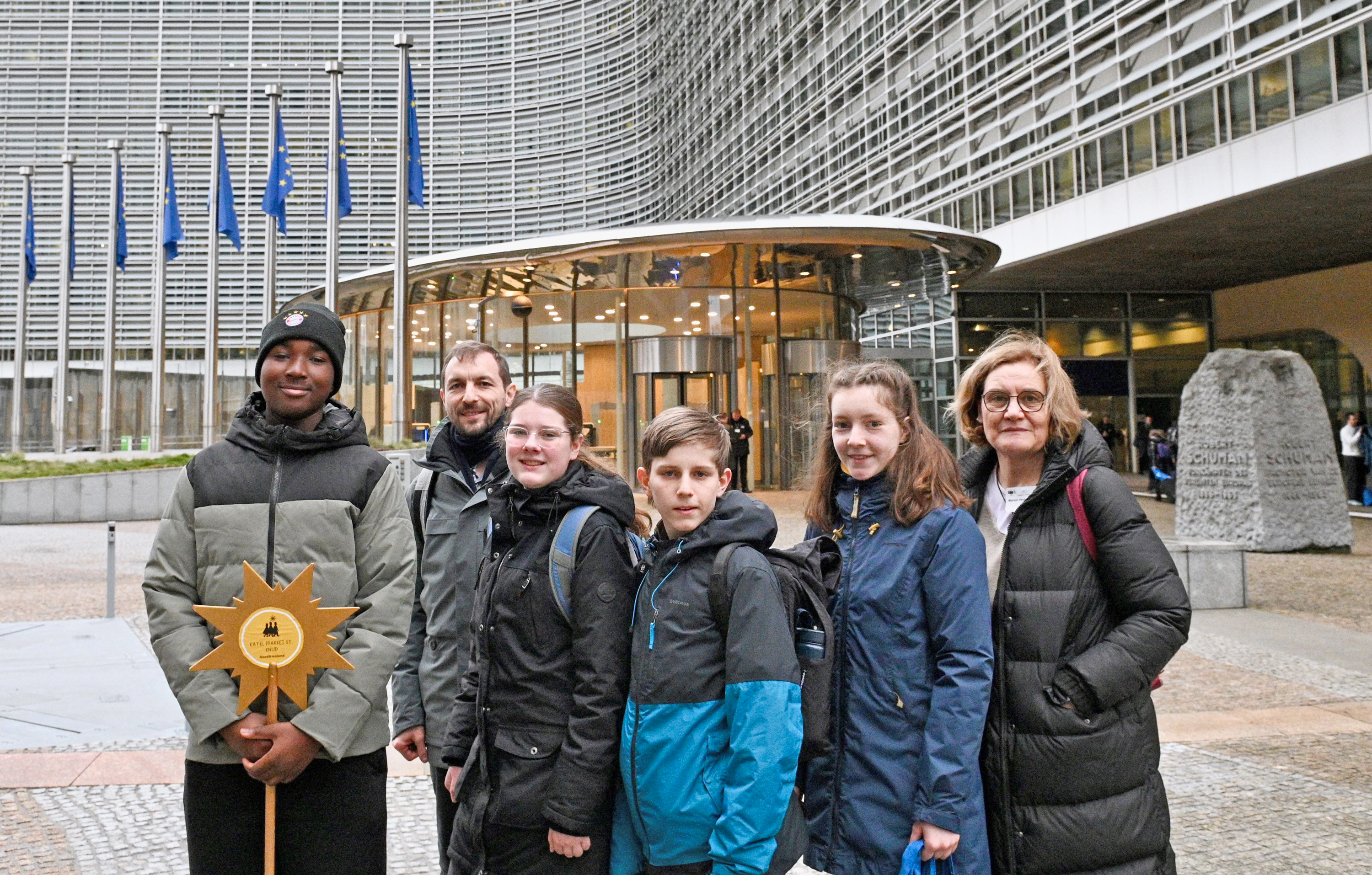 20 Kinder und ihre erwachsenen Begleiter machen sich Mitte Januar auf den Weg in die belgische Hauptstadt, um den Segen „Christus mansionem benedicat“ zum Sekretariat der Kommission der Bischofskonferenzen der Europäischen Gemeinschaft (COMECE), zum Europaparlament und – in diesem Jahr erstmals – zum Berlaymont-Gebäude der Europäischen Kommission zu bringen. Der Segen ist das eine, die Botschaft das andere: „Schule statt Fabrik – Sternsingen gegen Kinderarbeit“, so lautet das Thema der Aktion Dreikönigssingen 2026. Den Jungen und Mädchen im Alter zwischen 9 und 15 Jahren ist es ebenso wichtig wie der Segen, das wird nicht zuletzt in den Texten deutlich, die sie vortragen. Ob die besuchten Politiker es auch ernst nehmen, können sie nun unter Beweis stellen.