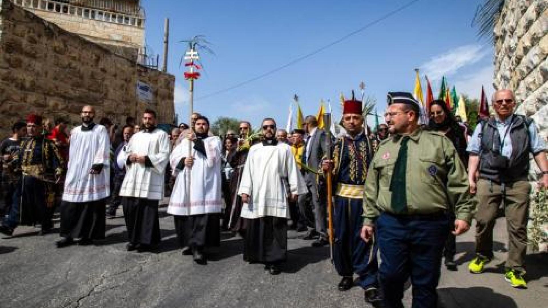 Jubel brach aus, als Erzbischof Pierbattista Pizzaballa, der Leiter des Lateinischen Patriarchats, die Gläubigen im Hof der Annakirche auf Arabisch begrüßte. Mehr als 50 Busse mit Christen aus dem Westjordanland hatten den Weg nach Jerusalem gefunden, angesichts der eingeschränkten Bewegungsfreiheit für Palästinenser keine Selbstverständlichkeit. Den Frieden in der Stadt Jerusalem besang eine der Pfarreigruppen auf ihrem Weg über den Ölberg. Die mitgeführte palästinensische Fahne wurde von der israelischen Polizei beschlagnahmt. Weitere Zwischenfälle am Wegrand gab es keine.