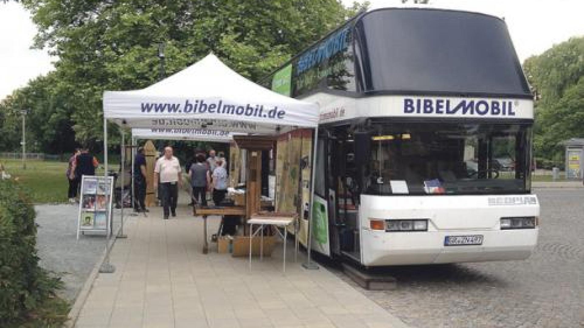 Im Untergeschoss bietet der ehemalige Reisebus eine Ausstellung zur Entstehung der Bibel und einen Buchladen. Im Obergeschoss können Gruppen und Schulklassen zwei multimediale Gesprächsräume nutzen. Tontäfelchen, echtes Papyrus, ein „ägyptisches Notebook“ (Wachstafeln zum Schreiben) sowie circa 50 fremdsprachige Bibelausgaben, ein Büchertisch und weitere Medien gibt es im Bus. Dazu gehören auch Bibeln in den Ursprachen Hebräisch und Griechisch sowie die kleinste Bibel der Welt. Sie ist nur mit dem Mikroskop lesbar. „Außerdem kann auf einer Gutenberg-Druckerpresse gedruckt oder eine These an eine Thesentür genagelt werden“, schildern die Bibelmobil-Mitarbeiter Andreas Schmidt (54) aus Ullersdorf bei Niesky und Stephan Naumann (61) aus Görlitz.