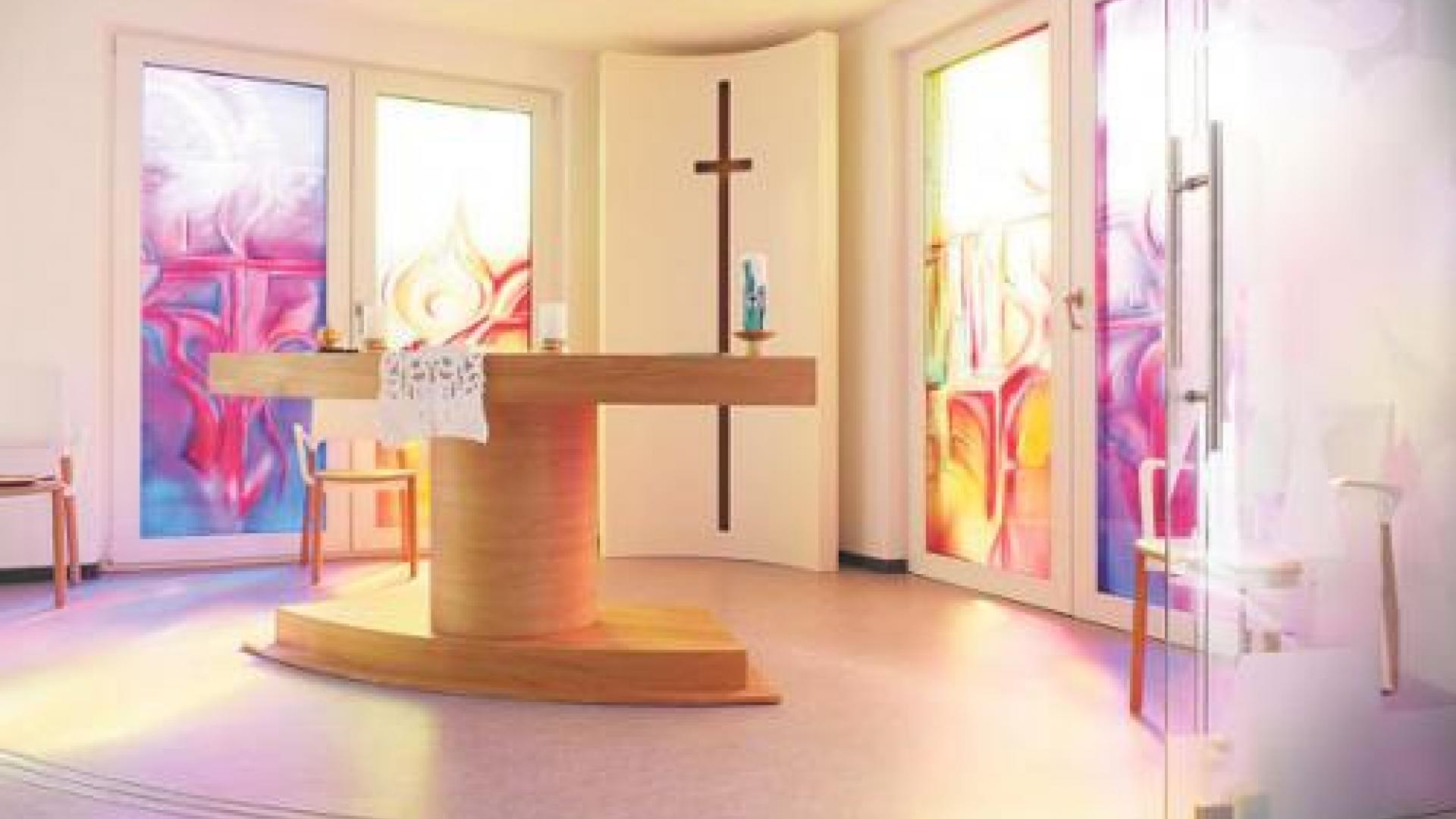 | Ein moderner, meditativer Raum in der Caritas-Altenpflegeeinrichtung Haus Clara in Weimar soll Einladung für Christen wie Nichtchristen sein, Ruhe zu finden und vielleicht in den Kontakt zwischen Erde und Himmel zu treten. Foto: Caritas-Trägergesellschaft „St. Elisabeth“ |