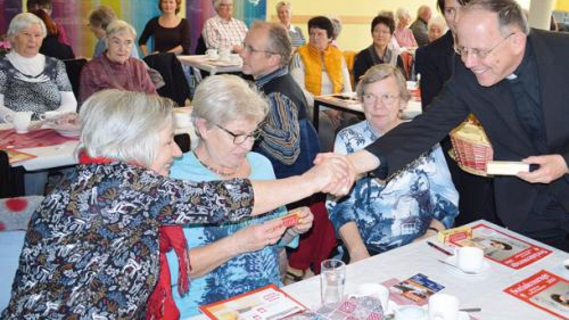 | Bischof Ulrich Neymeyr bedankt sich bei den in seinem Bistum tätigen ehrenamtlichen Helferinnen und Helfern der Caritas mit Pralinen einer Thüringer Firma. Fotos: Holger Jakobi |