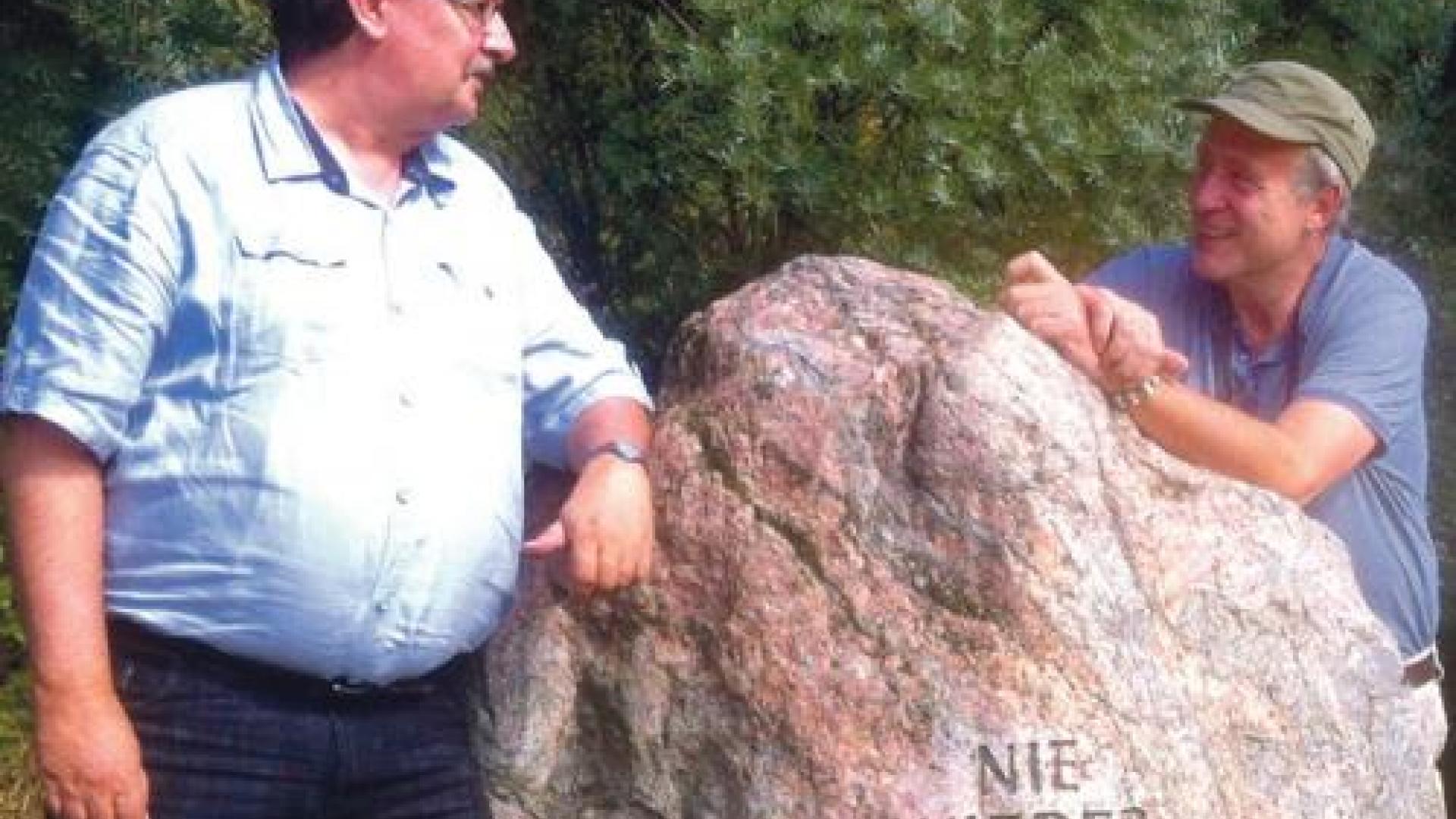 | Stefan Branahl (rechts) und Matthias Holluba vor fünf Jahren auf Spurensuche an der ehemaligen innerdeutschen Grenze. Auftakt an einem Gedenkstein bei Travemünde an der Ostsee. Fotos: Archiv |