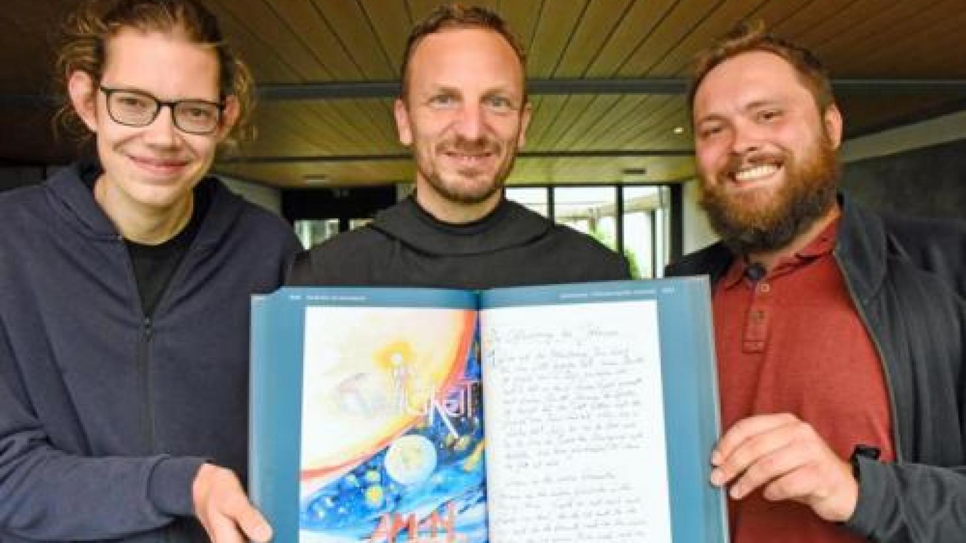 Der Umstand, dass die Bibel auch nach Nütschau gelangt ist, hat mit Stammgästen des Klosters zu tun, einer Familie aus der Schweiz. Tochter Johanna, die katholisch ist, hatte Pfarrer Habenicht beim Konfirmationsunterricht unterstützt und erzählte Jugendbildungsreferent Benjamin Lipinski (26) von dem Bibelprojekt. Der wiederum schlug den Brüdern vor, die Corona-Bibel auch nach Nütschau zu holen. Noch bis Ende 2023 soll die Corona- Bibel unterwegs sein, je einen Monat Platz an einem Ort finden, wo Menschen sich von der Abschrift inspirieren lassen können.