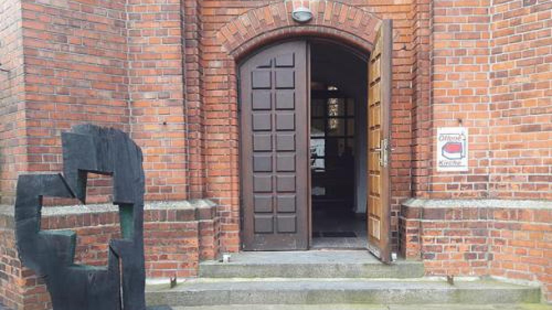 | „Sie nehmen Holz weg, damit ein Kreuz entsteht“ – eines von Dorfstechers Kreuzen vor dem Kirchenportal in Neuruppin. Foto: Walter Pauly |