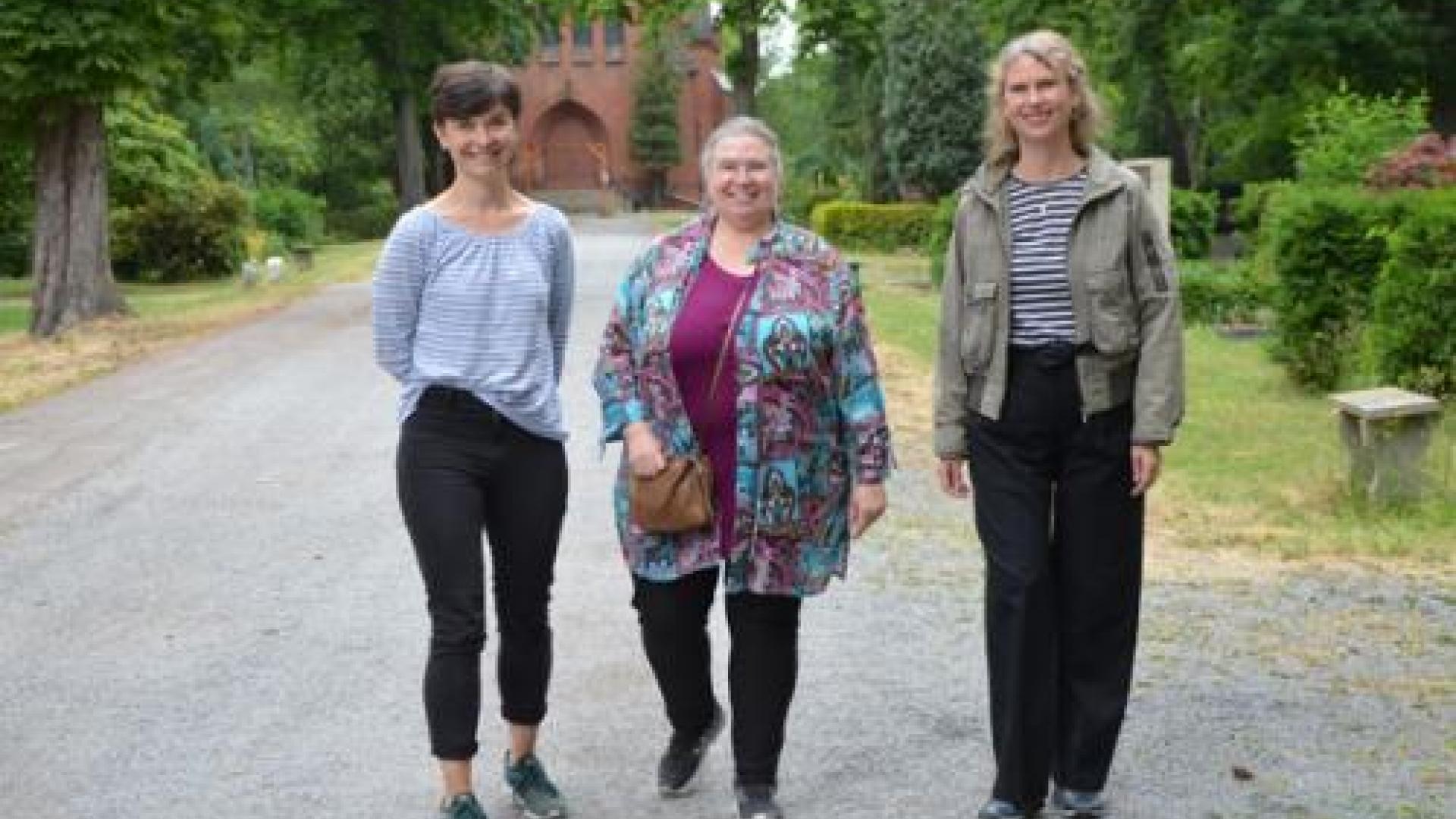 Wunderbare Erfahrungen, die er mit Friedhofsspaziergängerin Daniela Pfeiffer aus Hohenschönhausen teilt. Auch sie habe im letzten April erst einmal interessiert geguckt und dann eine Stunde gequatscht, erzählt sie schmunzelnd. Jetzt ist sie es, die anderen Mittwoch für Mittwoch ein offenes Ohr leiht. Als inzwischen freiwillige Projekthelferin bringt sie ihre Kenntnisse aus einer sozialen Bücherstube und der Seniorenbetreuung in zwei Altersheimen ein. Sie höre sehr gerne zu, erzählt Daniela Pfeiffer, weil sie aus eigener und ehrenamtlicher Erfahrung weiß, wie viel seelische und körperliche Linderung menschliche Annahme und Gemeinschaft schenken können. Und auch wenn sie nicht unbedingt eine regelmäßige Kirchgängerin sei, „aber dieses verbindende Gemeindeleben von Jung und Alt, Arm und Reich, finde ich so schön, das spricht mich sehr an“. Auch Christine Otto hat die Idee von einem Raum der Begegnung und Gemeinschaft auf dem Friedhof sehr gefallen. Sie erfuhr über die Freiwilligenagentur OSKAR vom Friedhofstreff, komplettiert seither regelmäßig das Projektteam.