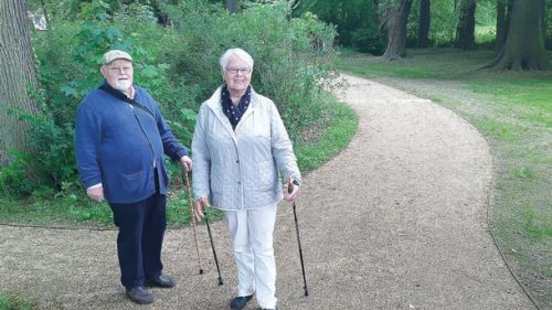 | Als erste Urlauber nach dem Lockdown kamen diese Eheleute aus Hannover zu Pfingsten ins Bischof-Benno-Haus Schmochtitz. Sie konnten sich unter anderem an den neu angelegten Wegen im Park freuen. Fotos: Sebastian Kieslich |