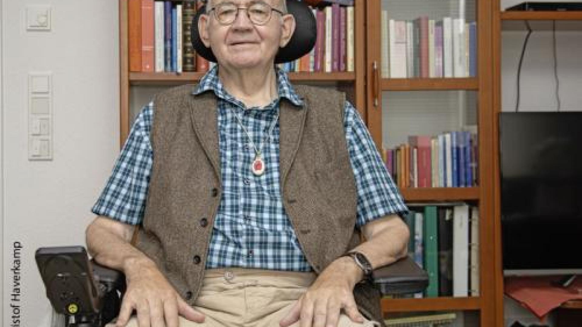 "Ich wohne sit ein paar Jahren in dieser barrierefreien Wohnung“, sagt Friedhelm Fuest, als er die Tür öffnet. „Mein Rollstuhl ist Hightech, mein Bett auch. Es gibt zum Glück jede Menge Hilfsmittel.“