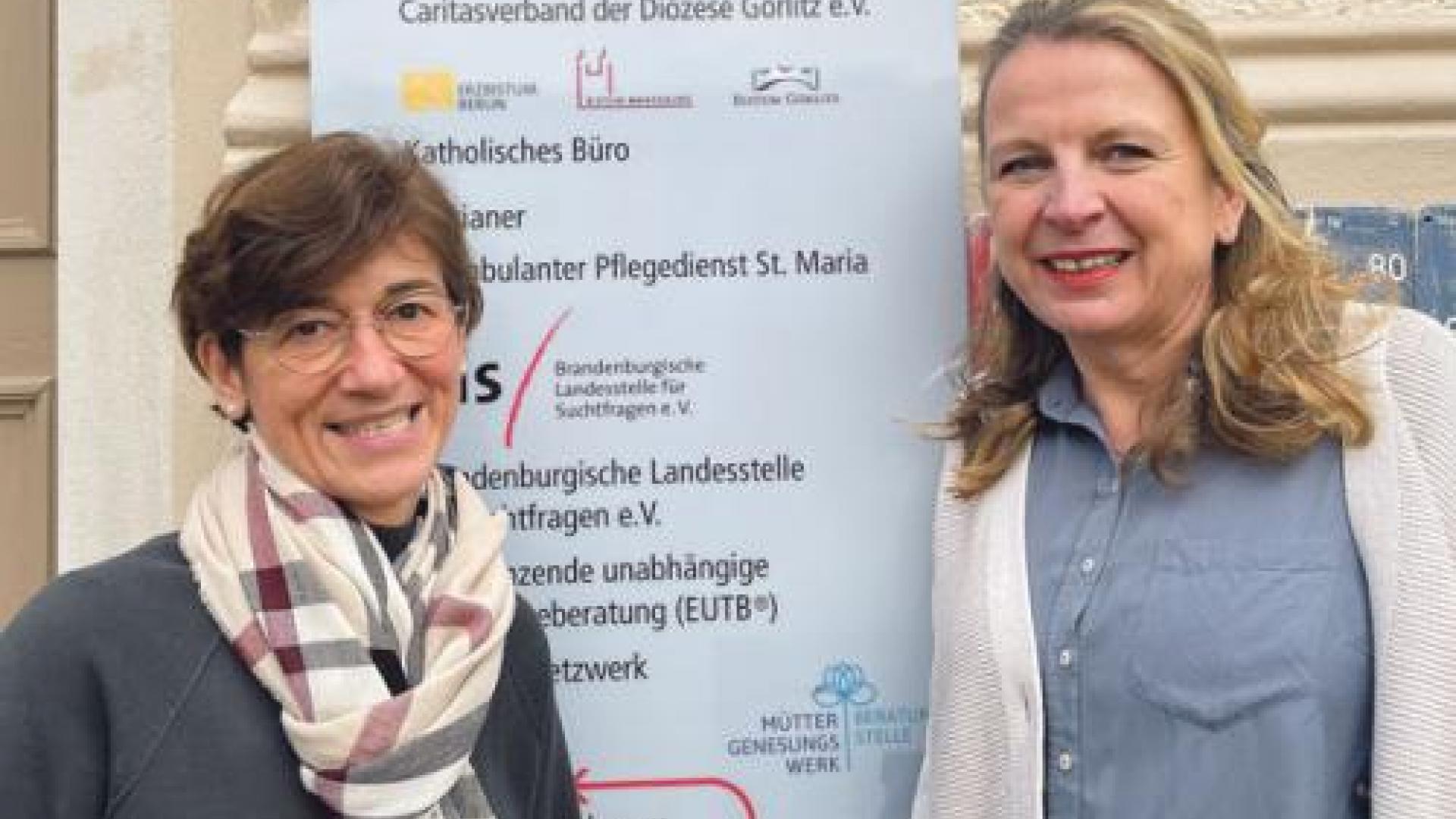 | Menschen auch in Krisensituationen mit Rat und Tat zur Seite stehen – das wollen Angela Schmidt-Fuchs (links) und Dorothee Kelm-Biereder von der Potsdamer Caritas, gleich neben dem Alexianer St. Josefs-Krankenhaus am Luisenplatz. Foto: Caritas Potsdam |