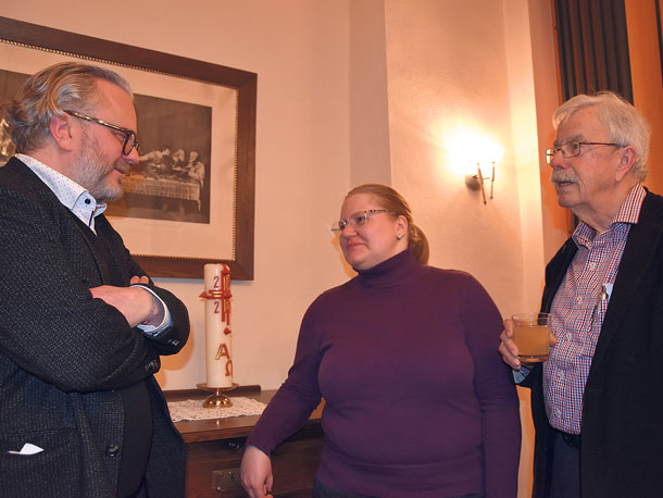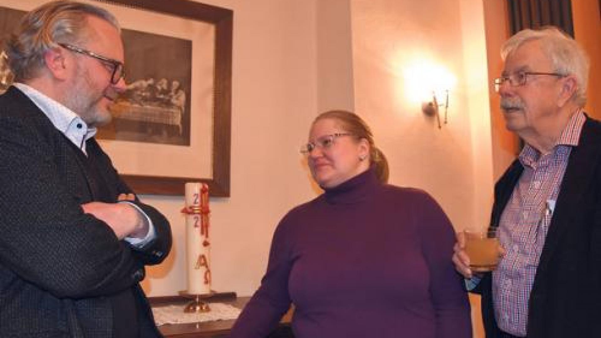 | Markus Thurau (links) im Gespräch mit den Köthener Kolping-Vorstandsmitgliedern Hans-Martin Riemen und Christina Gießler. Foto: Dorothee Wanzek |