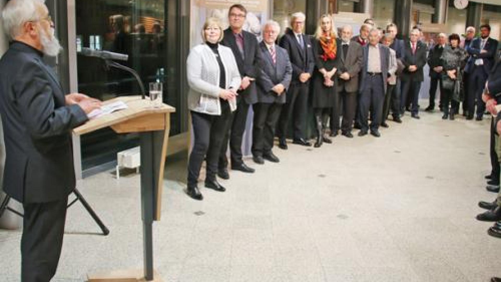| Bischof Gerhard Feige spricht bei der Eröffnung der Ausstellung anlässlich von 1050 Jahre Gründung des Erzbistums Magdeburg im Landtag Sachsen-Anhalts. | Foto: privat |