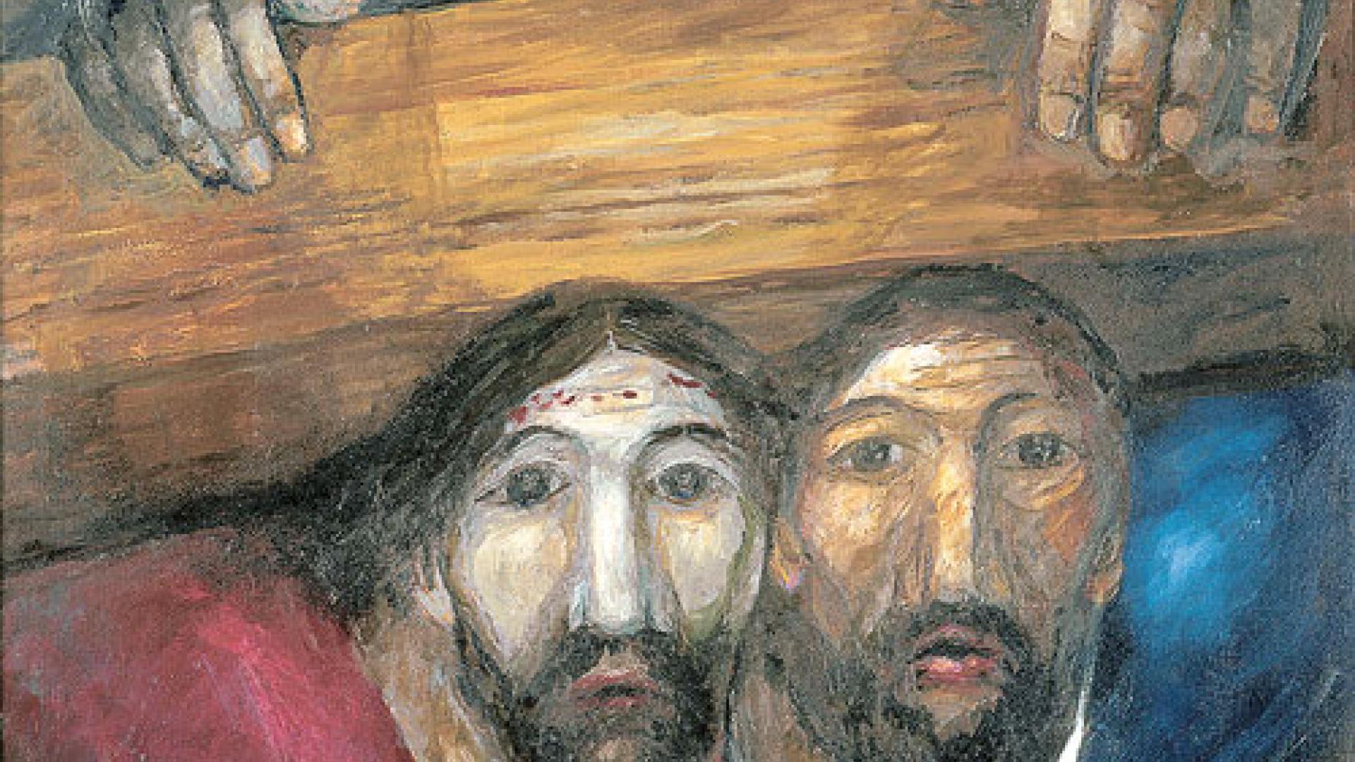 | „Einer trage des anderen Last.“ Sieger Köders Simon-von-Zyrene-Bild drückt aus, was sich Ellen Adler von Mitchristen wünscht. Foto: Sieger Köder-Stiftung Kunst und Bibel, Ellwangen / www.verlagsgruppe-patmos.de/rights/abdrucke |
