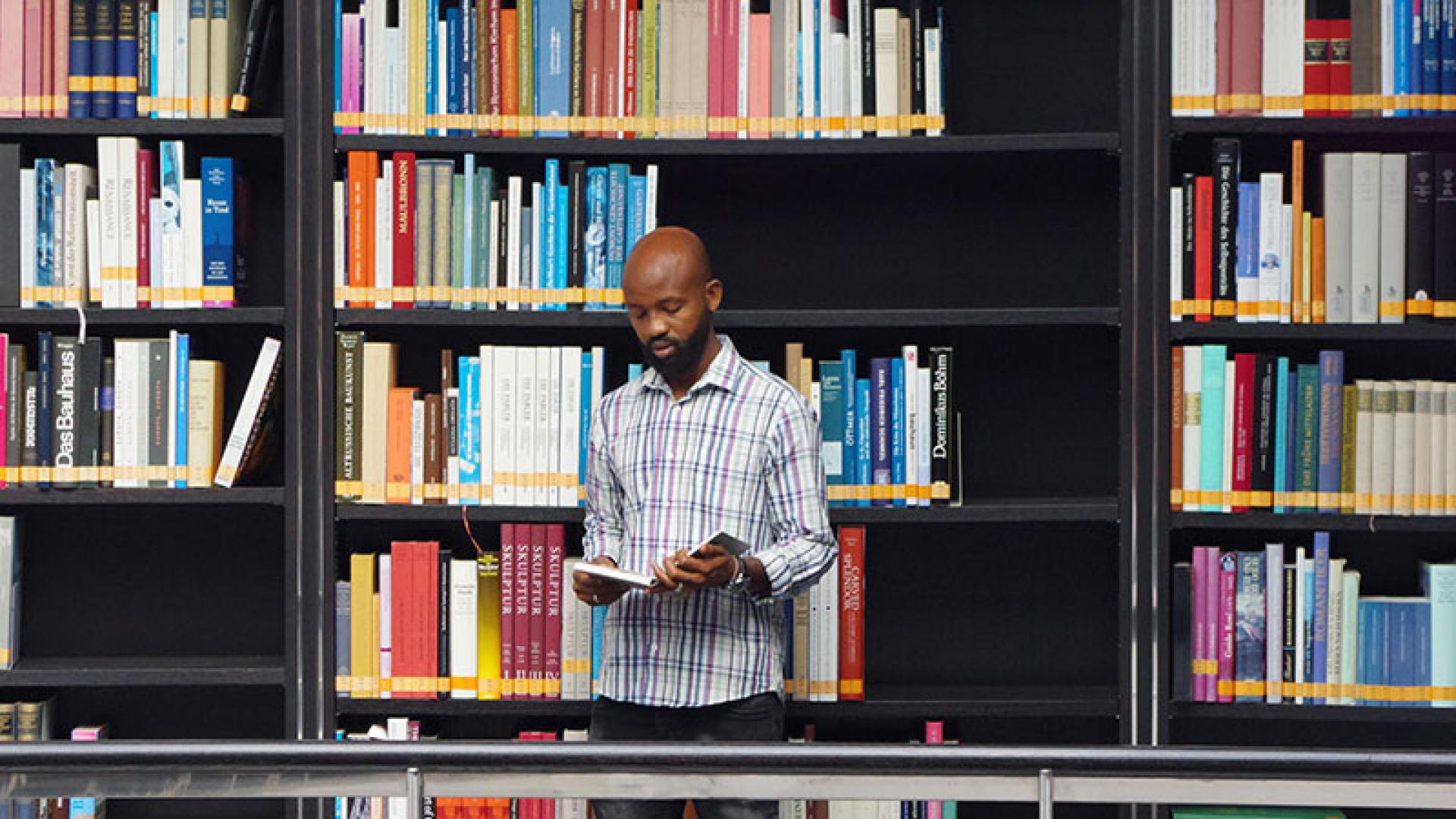 Auch wenn es kleine Unterschiede zur Bibliotheksarbeit im Sudan gibt, hat sich Ibrahim schnell eingearbeitet. „Die Arbeit ist die gleiche. Auch wenn die Oberflächen der Programme, mit denen hier gearbeitet wird, anders aussehen, ist die Struktur dahinter identisch“, erklärt der Bibliothekar aus Darfur.
