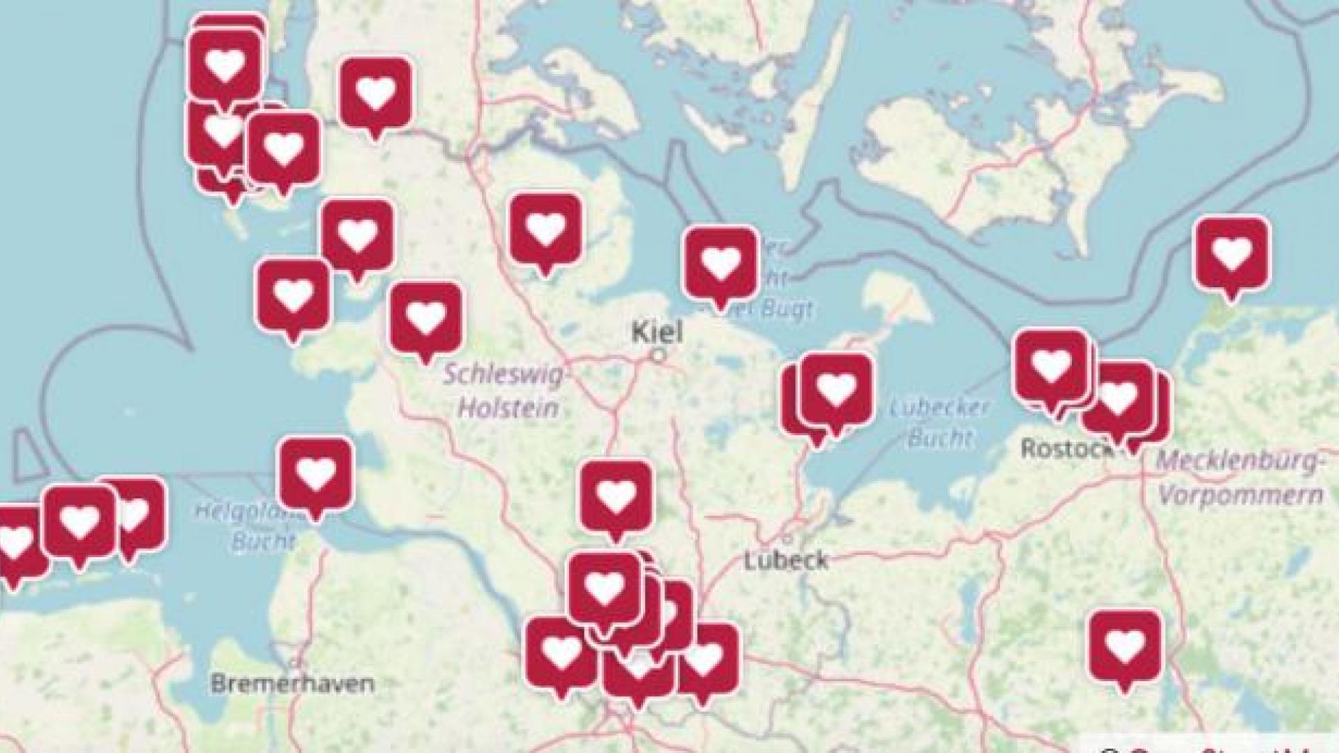 Einen regelrechten Wust bilden die Herzen, mit denen die jeweiligen Orte markiert werden, wenig überraschend im Norden Deutschlands, vornehmlich an den Küsten der Nord- und der Ostsee. Darunter beispielsweise Binz auf Rügen oder Norderney. Von der Nordseeinsel ist auch ein Foto beigefügt, das wahlweise neben den Geodaten des Ortes hochgeladen werden kann. Herrliche Aufnahmen entstanden etwa bei Osborn nahe Trier und im Hamburger Stadtteil Eidelstedt. Als Wohlfühlorte wurden jeweils die eigenen Gärten angegeben. Natürlich finden sich auch südliche Urlaubsziele auf der Karte: der Gardasee oder die Insel Mallorca.
