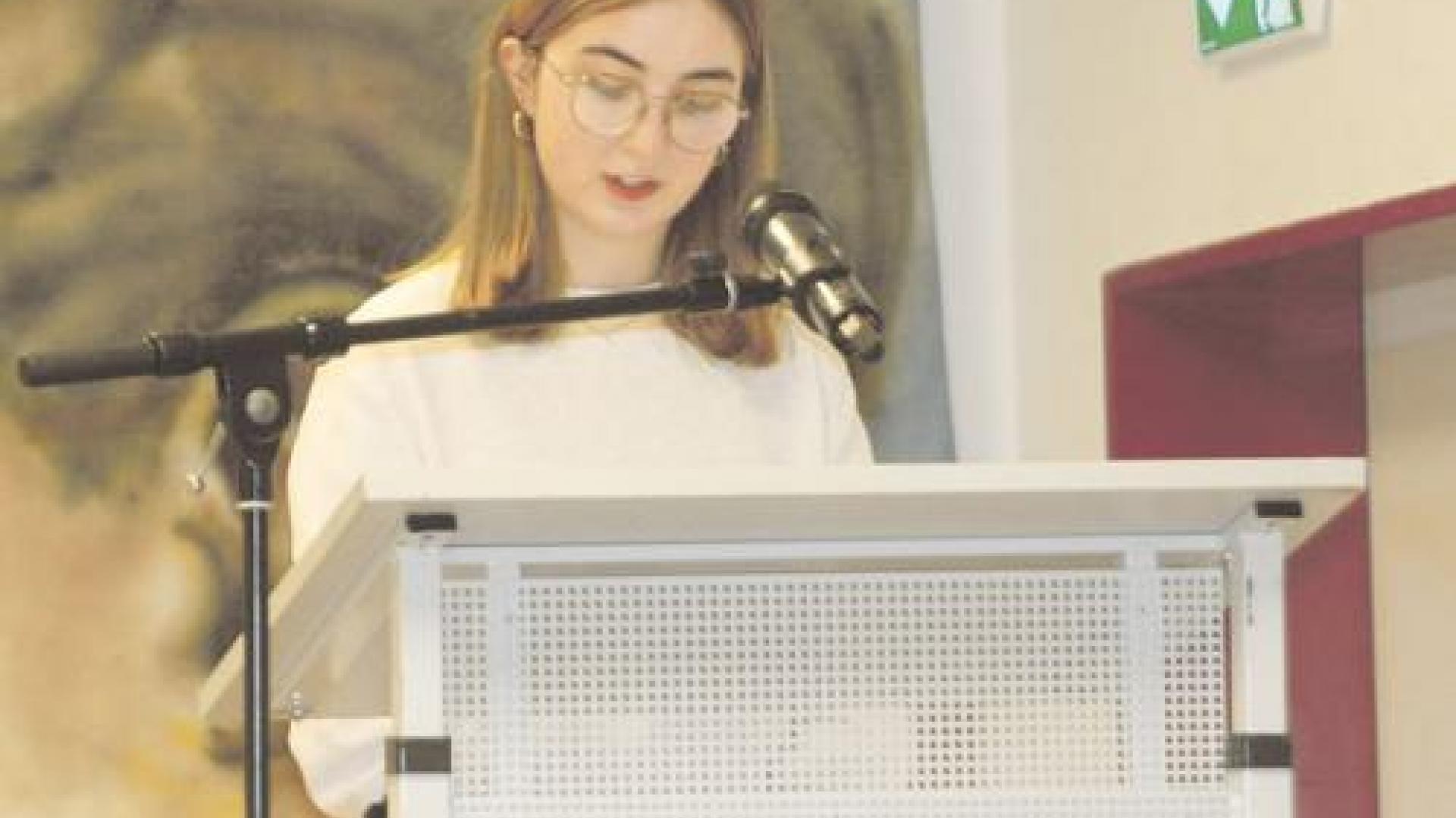 | „Erwartungen? Meine oder Deine?“ Paula Pieczuch hatte ihrem Impuls diesen Titel gegeben und las ihn während des Festgottesdienstes vor. Foto: Christine Bose |
