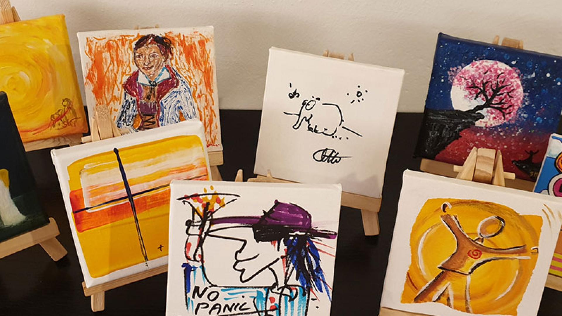 Was haben Udo Lindenberg und Sr. M. Teresa Slaby, Lena Meyer-Landrut und Bischof Heiner Wilmer, Barbara Schöneberger und Otto Waalkes gemeinsam? Oder der Pop-Art-Künstler Tim Davies und Margot Käßmann? Sie alle werden versteigert. Natürlich nicht in Person, aber Werke von ihnen. Kunstwerke im Kleinen: Mini-Leinwände in 10 mal 10 Zentimeter. Alle individuell gestaltet für das Hospiz Luise in Hannover.