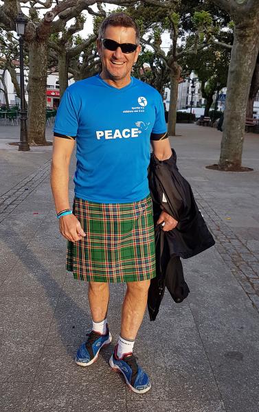John McGurk auf dem Jakobsweg – auch auf dieser Strecke im traditionellen schottischen Kilt, seinem Markenzeichen.