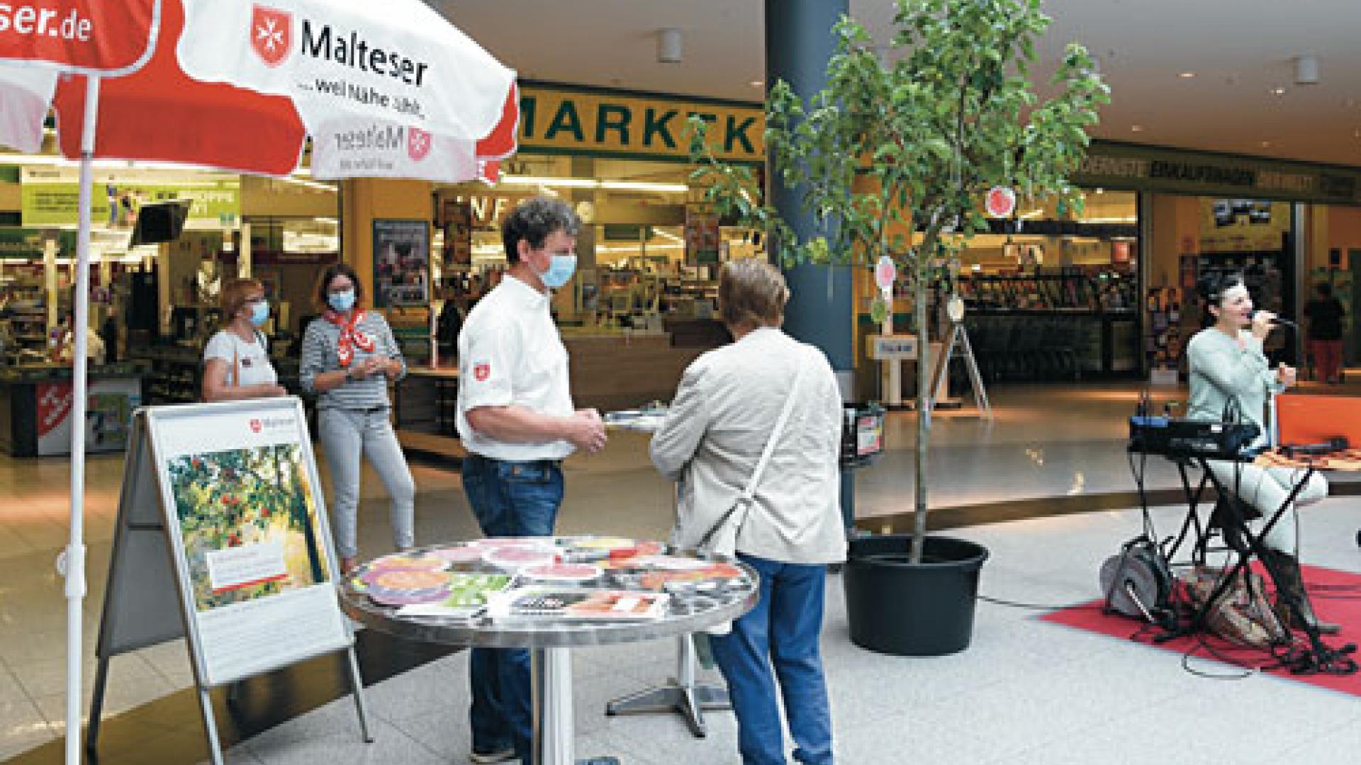 Inmitten eines großen Einkauf-Centers in Cottbus weist ein Aufsteller unter einem Malteser-Schirm auf eine besondere Aktion des ambulanten Malteser Hospizdienstes hin. Unter dem Thema „Lebensträume“ steht: „Was möchte ich noch erleben, bevor ich sterbe?“ Besucher des Centers wurden am 24. Juni von den Koordinatoren des Ambulanten Hospiz- und Palliativberatungsdienstes, Christiane Schwarz und Michael Doll, eingeladen, unter der Lichtkuppel im Lausitzpark „eigene Lebensträume einem Apfelbaum zu übergeben und diese an ihm reifen zu lassen“. Drei Tage lang sind Ehrenamtliche des Hospizdienstes vor Ort, sprechen über ihre Arbeit und sind bereit für Gespräche über das Er-Füllen der eigenen Lebenszeit“, erklärt Michael Doll. Die Aktion ist Teil der Brandenburgischen Hospizwoche.