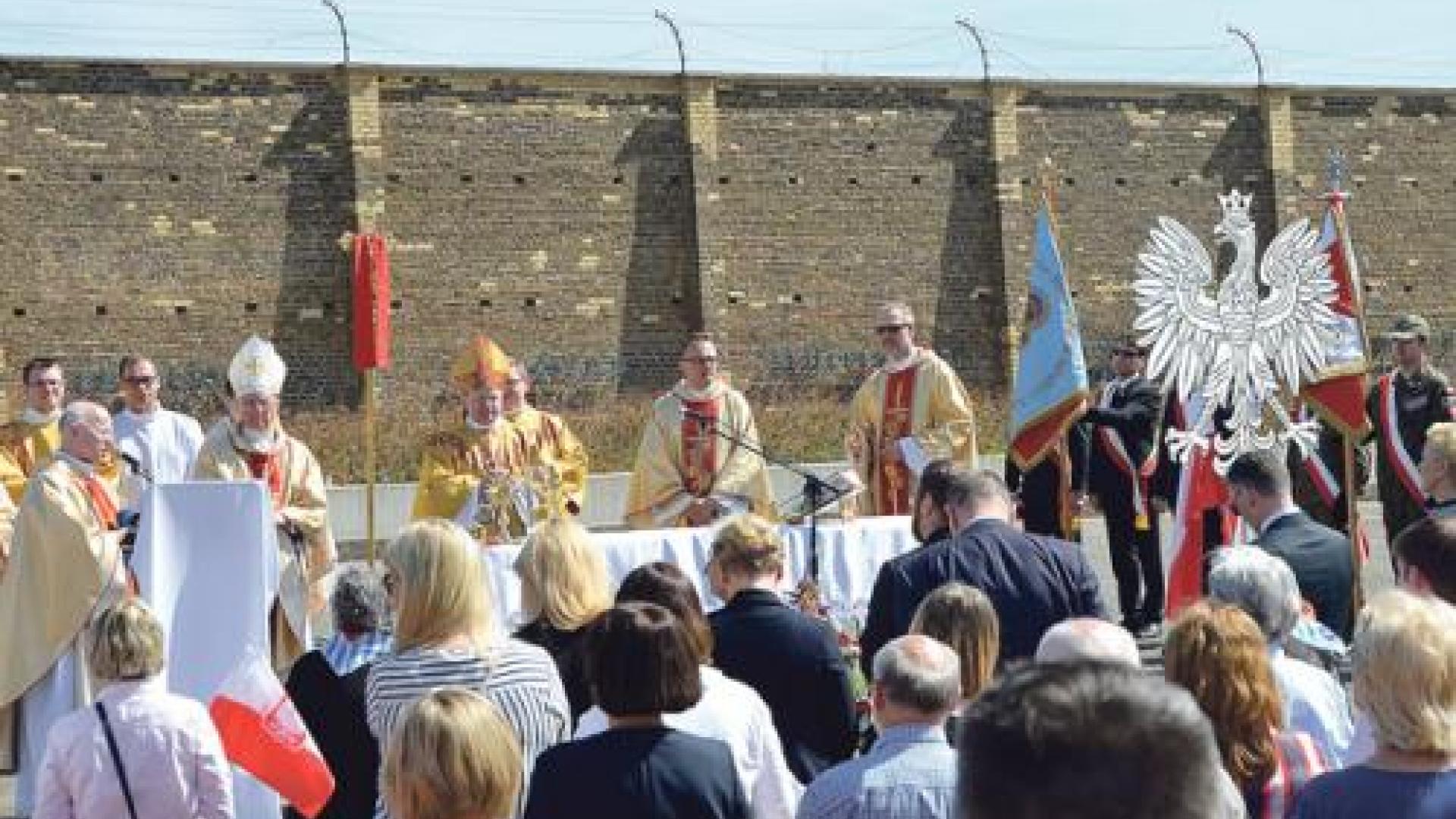 | Gedenkgottesdienst in polnischer Sprache vor dem Zellenbau mit Bronisław Dembowski, Bischof em. von Włocławek und Henryk Wejman, Weihbischof in Stettin-Cammin. | Fotos: Marina Dodt |