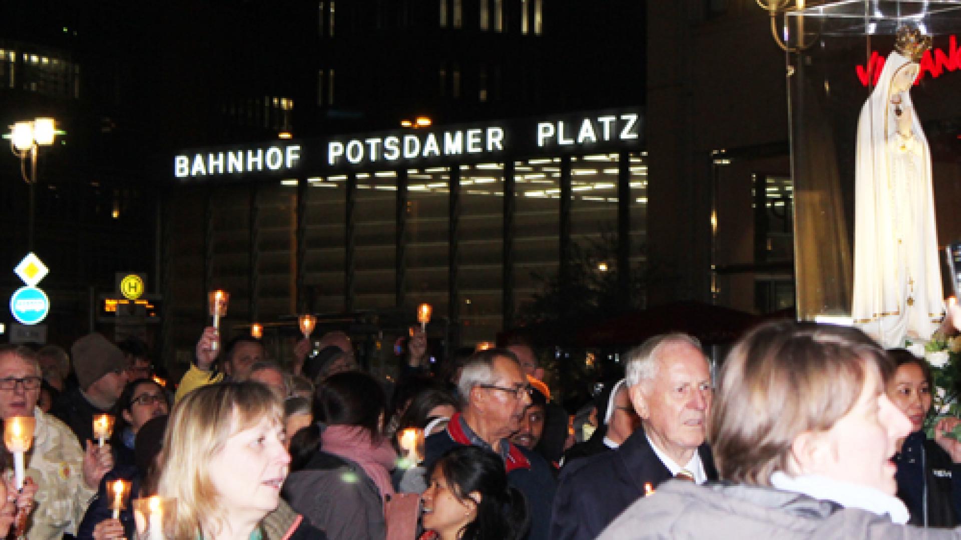 Rund 2000 Beter machten sich danach auf den Weg durch Berlin, darunter Fatimagruppen aus dem ganzen Bundesgebiet, unter anderem aus Wallfahrtsorten und Gebetsstätten wie Sievernich, Heroldsbach oder Wigratzbad.