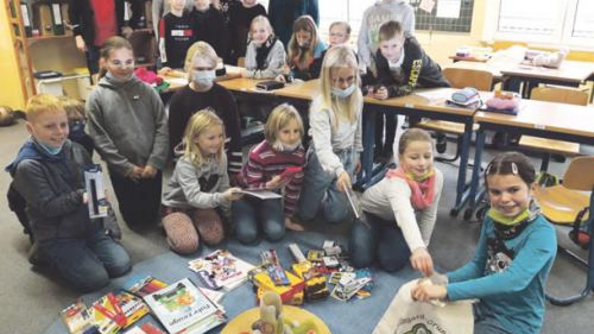 Die Leiterin der PaOst war am 12. November zu einem Aktionstag nach Haldensleben gekommen. Mit Azam Basiri, einer Bundesfreiwilligen in der Arbeitsstelle Jugendpastoral, die bei der PaOst aushilft, wollte sie „Martinstüten voller Freude“ abholen. Diese sollten die Grundschüler bei dem Aktionstag packen und zwar für Gleichaltrige in einer Schule im Ort Krasnaja Retschka im Gebiet Tschüi in Kirgisistan. Koordiniert von Religionslehrerin Christine Rauwolf, hatten die Eltern zuvor Geld gesammelt und Buntstifte, Malfarbe und -bücher, aber etwa auch Zahnpasta-Tuben und Kuscheltiere besorgt.