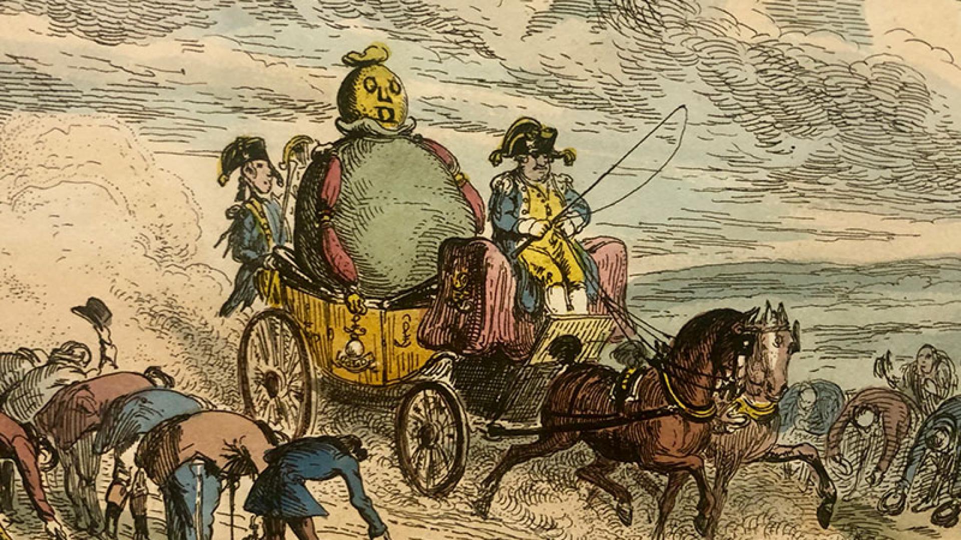 Aber wie so oft sind Ideal und Wirklichkeit zwei Seiten einer Medaille, lauert die Versuchung hinter jeder Ecke. Da ist der Glaube der einfachen Leute. In den alten Geschichen erzählen sie sich vom Sterntaler, einem Paradebeispiel christlicher Nächstenliebe, das alles an die Armen gibt, selbst sein letztes Hemd, und dafür reichlich belohnt wird. Bitterböse dagegen zwei Holzstiche aus Frankreich und England: Den Mammon zeigt die eine Karikatur, fett sitzt er in der Kutsche und fährt vorbei an den Bürgern, die ihren Bückling bis in den Straßenstaub machen. Die andere zeigt den „Teufel des Geldes“, grinsend lässt er die Münzen fallen, zwei Pfaffen strecken gierig den Kelch in die Höhe, um möglichst viel aufzufangen.