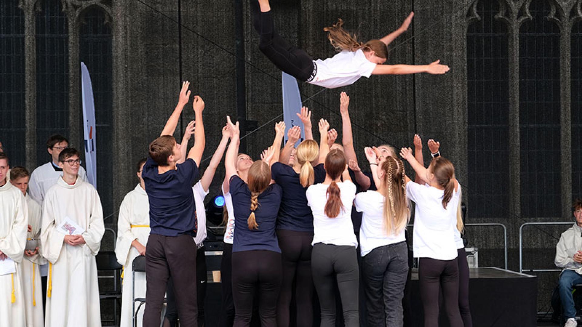 Der anschließende Gottesdienst mit Bischof Heiner und Schulseelsorger Martin Marahrens war ein bewegter Gottesdienst – besonders durch eine anspruchsvolle Tanzchoreografie.