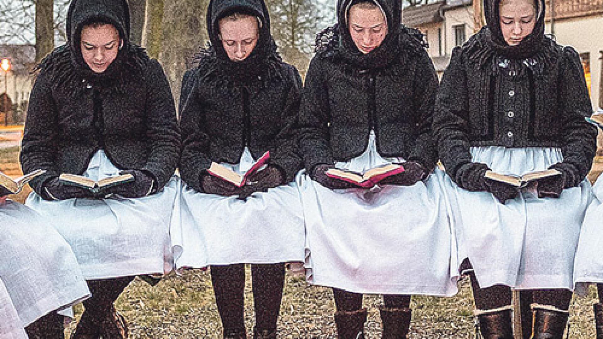 | Am Ostermorgen vor der Kirche in Schleife: Sorbische Frauen und Mädchen verkünden singend die Auferstehungsbotschaft. | Foto: Karsten Nitsch/Spreefotograf |