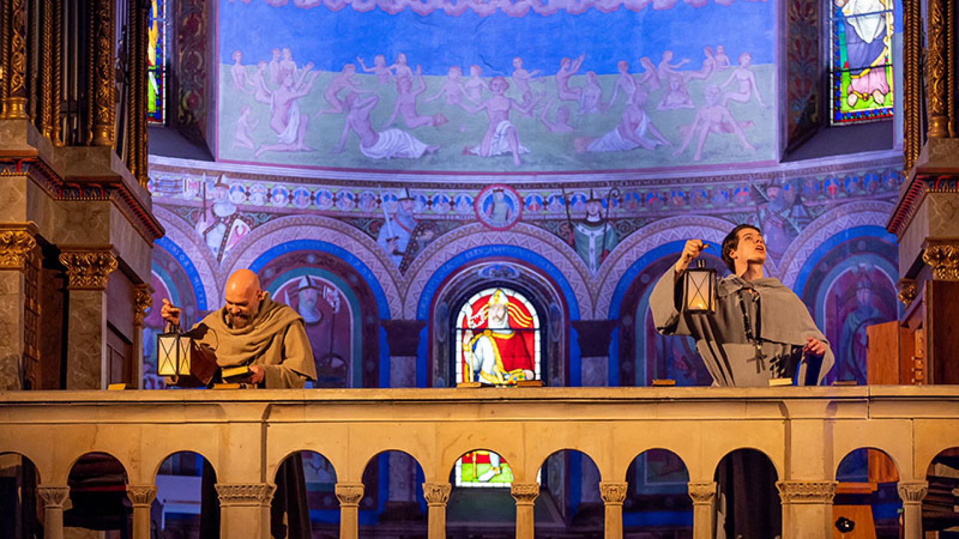 Die Geschichte selbst dürfte vielen bekannt sein: Der Franziskanermönch William von Baskerville macht sich gemeinsam mit seinem Adlatus Adson von Melk auf die Suche nach dem Urheber dieser Verbrechen, die die ehrwürdigen Klostermauern erschüttern. Diese Suche stellt sich allerdings als komplexer heraus als anfänglich vermutet. Und so entspinnt sich ein komplizierter und spannender Krimi, der Einblicke in die Konflikte der mittelalterlichen Kirche gewährt und dem Stück eine feste Struktur gibt. Immer wieder erklingen in der alten Ruine die gregorianischen Gesänge. „Das hat was und es passt hier einfach super hin“, betont Vogtenhuber.