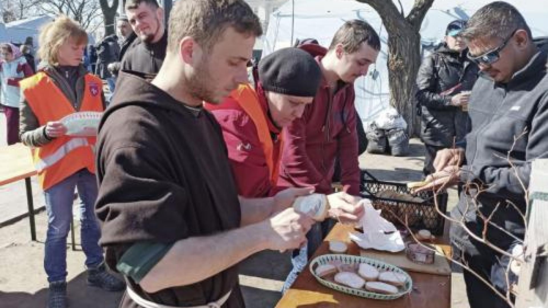 Die beiden Ordensmänner kamen dort im griechisch-katholischen Priesterseminar unter. Neben 150 Seminaristen waren in einem Nebengebäude auch viele Geflüchtete untergebracht. „Wir haben mit den Menschen dort alles geteilt: das Essen, das Gebet, den Luftschutzbunker“, sagt Bruder Moritz. „Wir sind als Fremde gekommen und nach zwei Wochen mussten wir Freunde zurücklassen.“