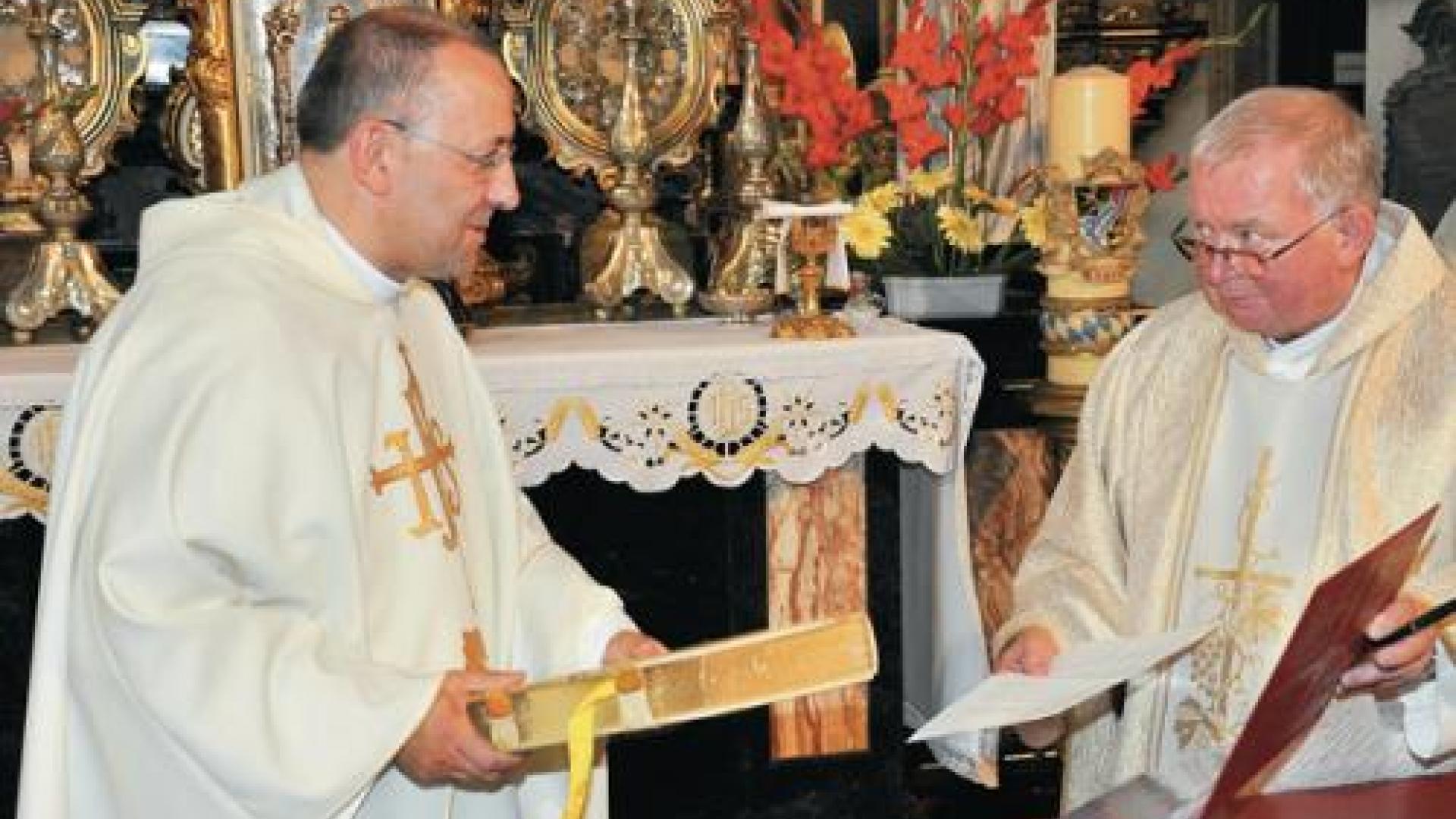 | Am Grab der Heiligen Hedwig in Trebnitz: Prälat Hubertus Zomack, am 26. August 2011 Dompropst und Diözesanadministrator, beim Treueeid von Wolgang Ipolt, zwei Tage vor seiner Bischofsweihe. | Fotos: Raphael Schmidt. |