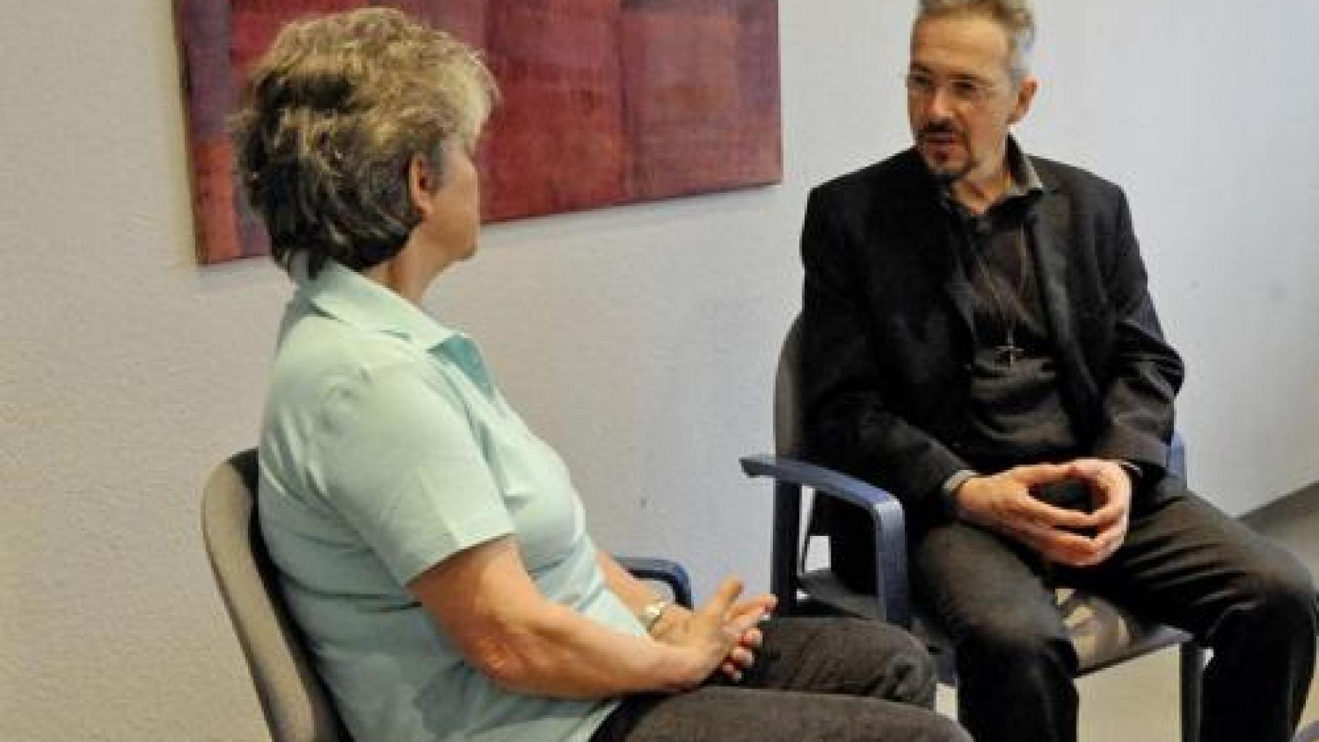 „Es gibt diejenigen, die so unter Druck stehen und bei denen das Problem schon so drängend geworden ist, dass es direkt aus ihnen herausbricht, weil sie nicht mehr weiterwissen“, sagt Jochen Sautermeister. Noch größer sei allerdings die Gruppe, die erst einmal vorsichtige Andeutungen mache. „Ich habe da ein Problem und komme nicht weiter“; oder: „Im Moment fällt mir das richtig schwer“, hören die Seelsorger dann oft. „Die Menschen testen und achten meist genau auf die Reaktion, weil Betroffene von psychischen Erkrankungen in unserer Gesellschaft immer noch relativ stark stigmatisiert sind“, sagt Jochen Sautermeister. Wichtig sei es dann, ein Signal zu senden, dass man das Problem erkannt hat, und vorsichtig nachzuhaken: Zum Beispiel: „Ich habe den Eindruck, Sie sind in letzter Zeit so niedergeschlagen. Ich mache mir Sorgen um Sie.“