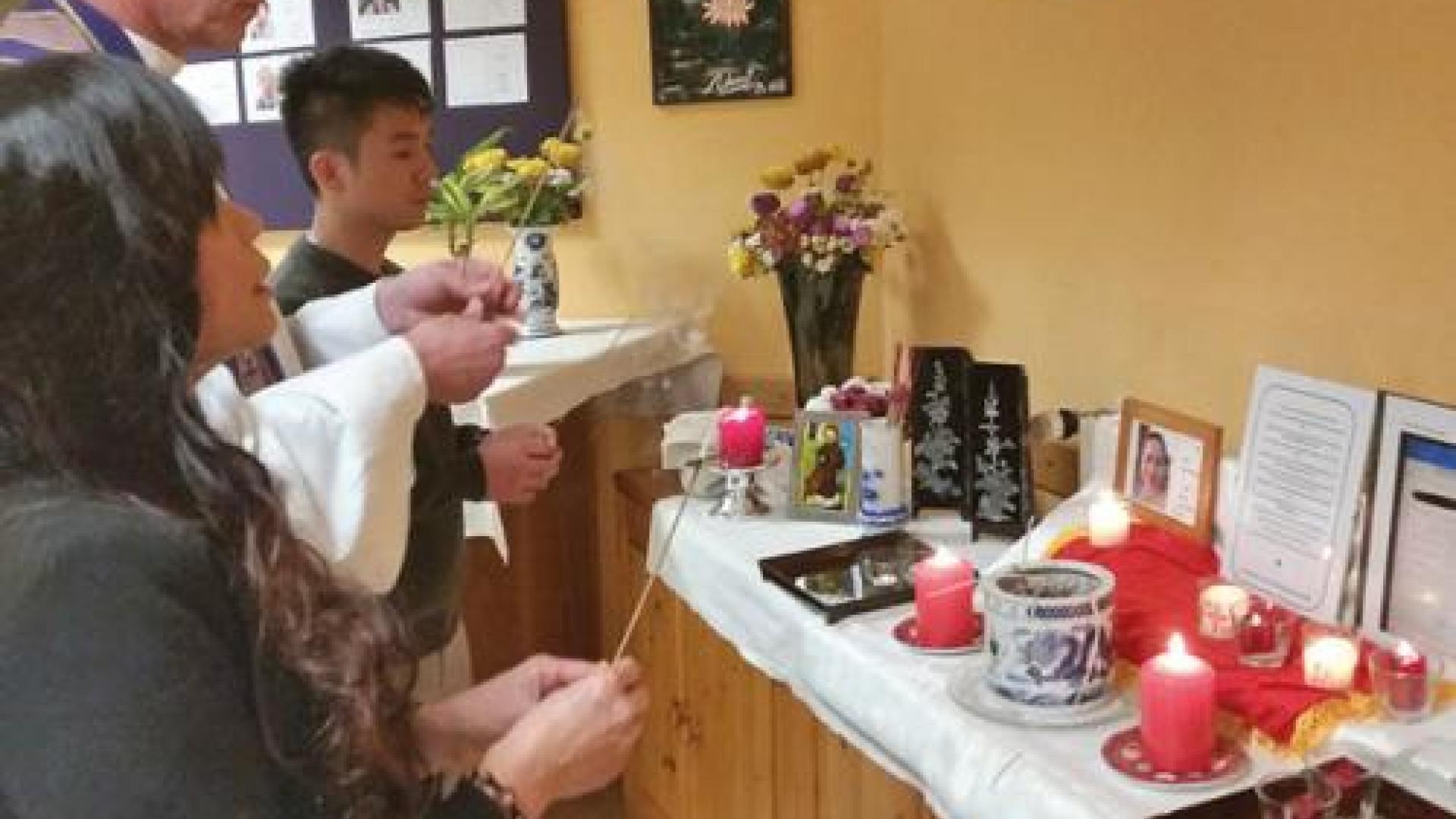 | Pater Stefan Taeubner SJ betet mit Vietnamesen der Leipziger Gemeinde für die auf der Fahrt nach Großbritannien in einem Kühltransporter gestorbenen Flüchtlinge und ihre Angehörigen. Foto: privat |