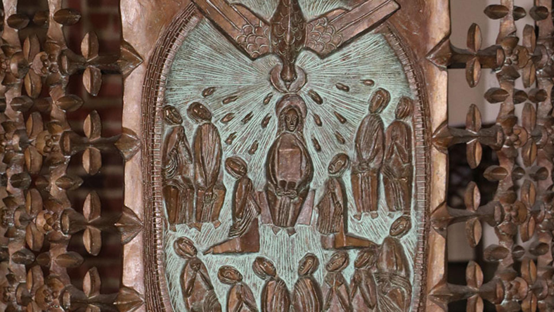 Patrozinium der Kirche das Pfingstgeschehen abgebildet.
