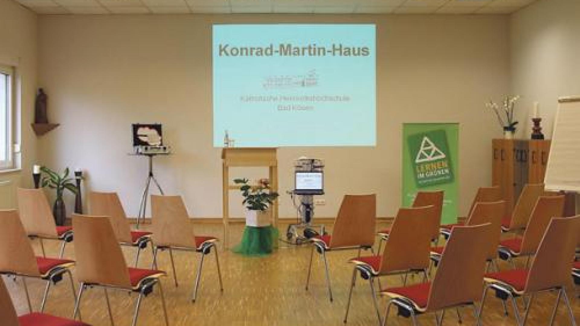 | 1947: Das Erzbischöfliche Kommissariat Magdeburg pachtet das ehemalige Wohnhaus der Familie von Ehrenberg in Bad Kösen und nutzt es als Bildungshaus. 1950: Das Haus wird gekauft und nach dem Paderborner Bischof Konrad Martin benannt. (Er wurde im preußischen Kulturkampf wegen Verletzung antikirchlicher Gesetze zu Festungshaft verurteilt und 1875 abgesetzt.) 1978: Das KMH geht in die Trägerschaft des Caritasverbandes für das Bischöfliche Amt Magdeburg über und dient vorwiegend als Ferienstätte. 1990: Nach baulichen Erweiterungen wird das Haus wieder als Bildungsstätte genutzt. 1994: Als erste Heimvolkshochschule Sachsen-Anhalts erhält das KMH die staatliche Anerkennung als Einrichtung der Erwachsenenbildung. Danach: Schaffung weiterer Seminarräume, Modernisierung der Gästezimmer, Aufzug, energetische Sanierung, Modernisierung, Erweiterung. 2014: Umwandlung des Hauses in eine gemeinnützige GmbH – 100prozentiger Gesellschafter ist das Caritas-Behindertenwerk GmbH - Burgenlandkreis. Heute verfügt das Haus über fünf Seminarräume sowie 56 Betten in 33 Zimmern. |
