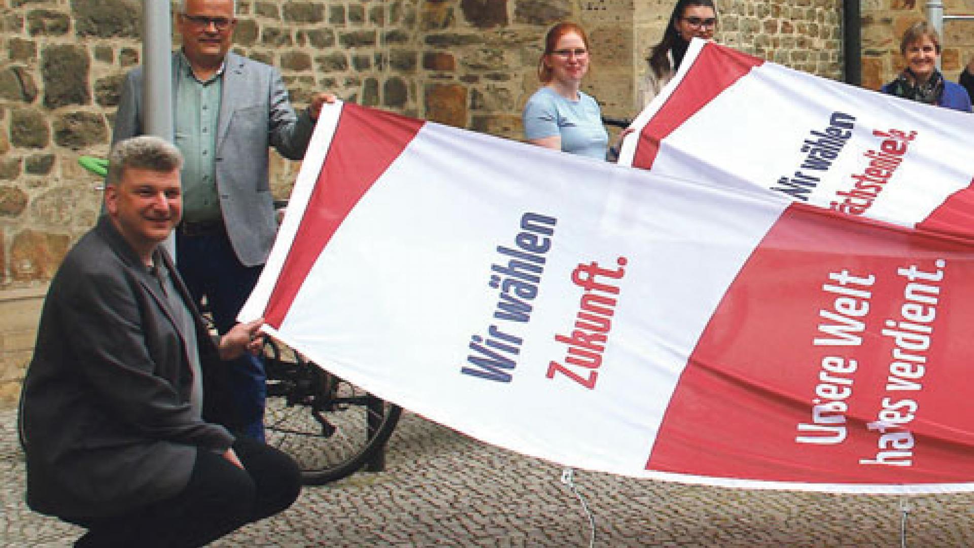 Am 6. Juni stehen die Landtagswahlen in Sachsen-Anhalt an, am 26. September ist Bundestagswahl. Grund genug für das Bistum, Flagge zu zeigen. Bischof Gerhard Feige und Vertreter entsprechender Initiativen aus dem Bund der Deutschen Katholischen Jugend (BDKJ), der Edith-Stein-Schulstiftung, dem Caritasverband, der Katholischen Erwachsenenbildung, dem Katholikenrat und der Fachkommission Gerechtigkeit, Frieden und Bewahrung der Schöpfung haben ein Bewusstseins-Projekt für die Landtags- und die Bundestagswahl auf den Weg gebracht. Dazu wurden am 11. Mai vor der Kathedrale St. Sebastian in Magdeburg die ersten Fahnen gehisst und Banner präsentiert.