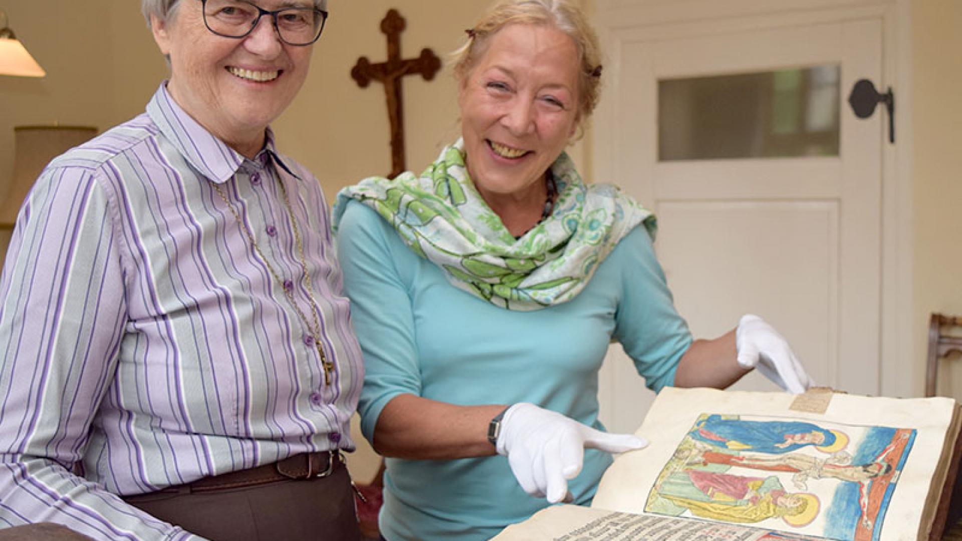 Ganz genau wusste niemand mehr, was dort vor 25 Jahren zur Klosterrenovierung auf den Dachboden geschafft wurde. Immerhin waren alle Bände sorgsam in Leinentücher gewickelt. „Die Bücher sind wunderschön alt, bei jedem Buch haben wir nur gestrahlt“, berichtet Schwester Ingeborg Wirz, die Geschäftsführerin der Klosterstiftung. Viele stammen aus der Zeit der Klostergründung vor 300 Jahren. „Dann war da auf einmal ein ganz altes, da hüpft das Herz vor Freude“, berichtet Wirz. Das „Missale Basiliense“ von 1488 entstand sogar noch vor der Ordensgründung der Ursulinen im Jahr 1535.