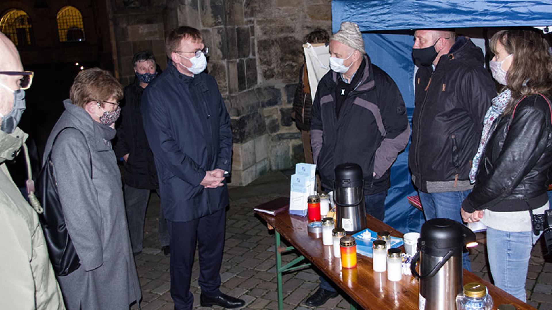 Wilk räumte im Gespräch mit den Organisatoren und Betroffenen ein, dass die katholische Kirche in Hildesheim schuldig geworden sei, dass Verantwortliche nicht nur weggeschaut, sondern durch Versetzungen von Tätern neue Taten ermöglicht haben. Er betonte allerdings auch, dass man im Bistum Hildesheim ernsthaft dabei sei, diese Vergangenheit aufzuarbeiten und ab Januar, entsprechend den Vorgaben der Bischofskonferenz, intensiv mit der Betroffeneninitiative zusammenarbeiten wolle. „Wir werden Sie beim Aufbau eines Netzwerkes unterstützen“, so Wilk. Er dankte den Organisatoren ausdrücklich auch im Namen von Bischof Heiner Wilmer für das Engagement und die Erinnerung an die Opfer. Wilk bat darum, dass man der Kirche auch die Zeit lasse, alles gründlich aufzuarbeiten. Er versicherte: „Wir haben das gleiche Anliegen. Auch wir wollen Aufklärung.“