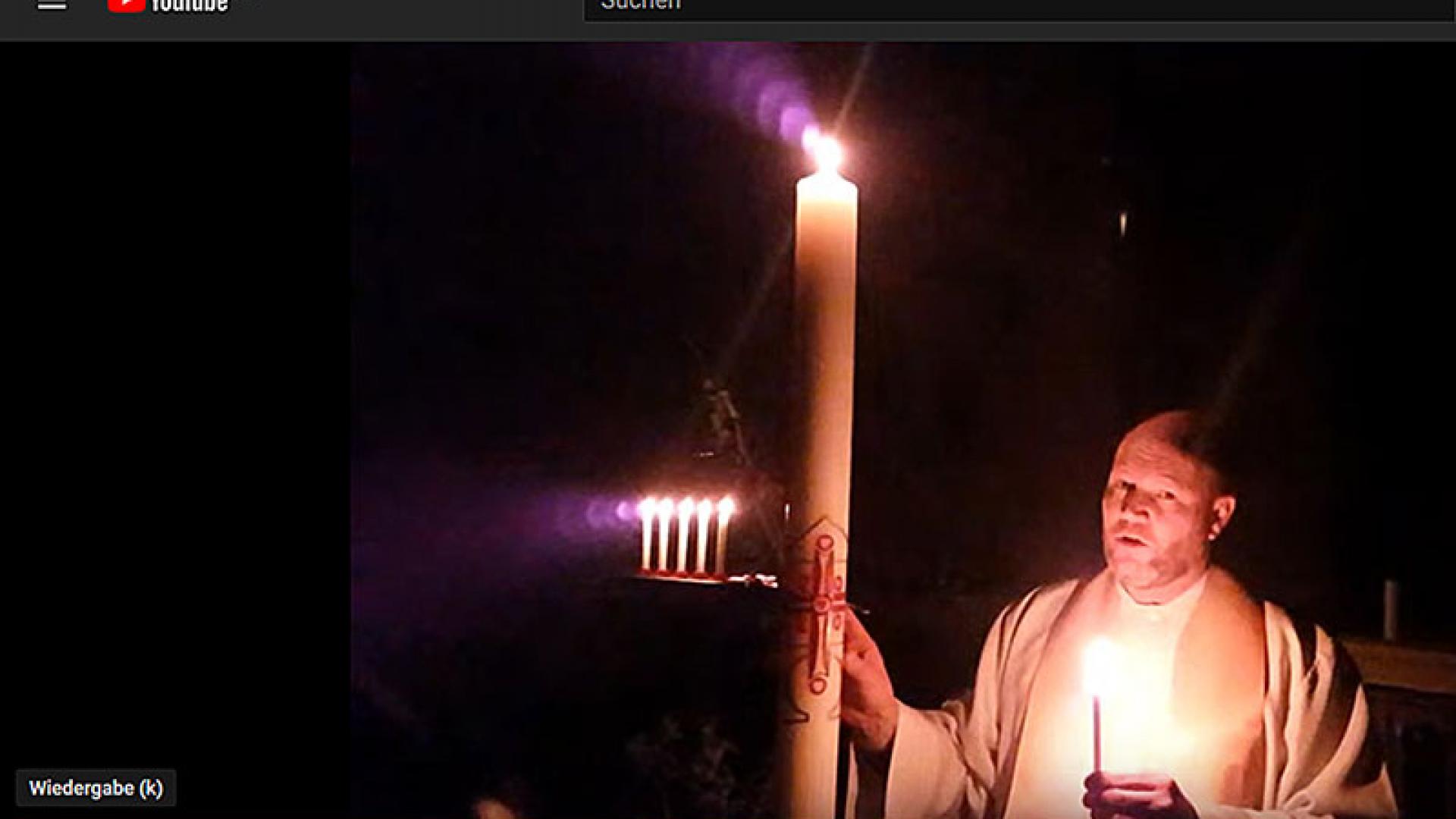 im Videostream die Symbolik der Osterkerze. Die Lesungen