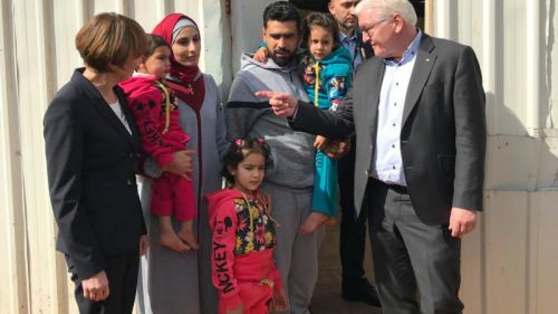 Bundespräsident Frank-Walter Steinmeier und seine Frau Elke Büdenbender suchen das Gespräch mit den Menschen im Lager. Auf ihrer Reise nach Jordanien und später in den Libanon dreht es sich oft um die Flüchtlingslage. Zuvor hatte Steinmeier mit Blick auf die Situation in Deutschland die Unterscheidung zwischen Asylberechtigten und Wirtschaftsflüchtlingen bekräftigt.