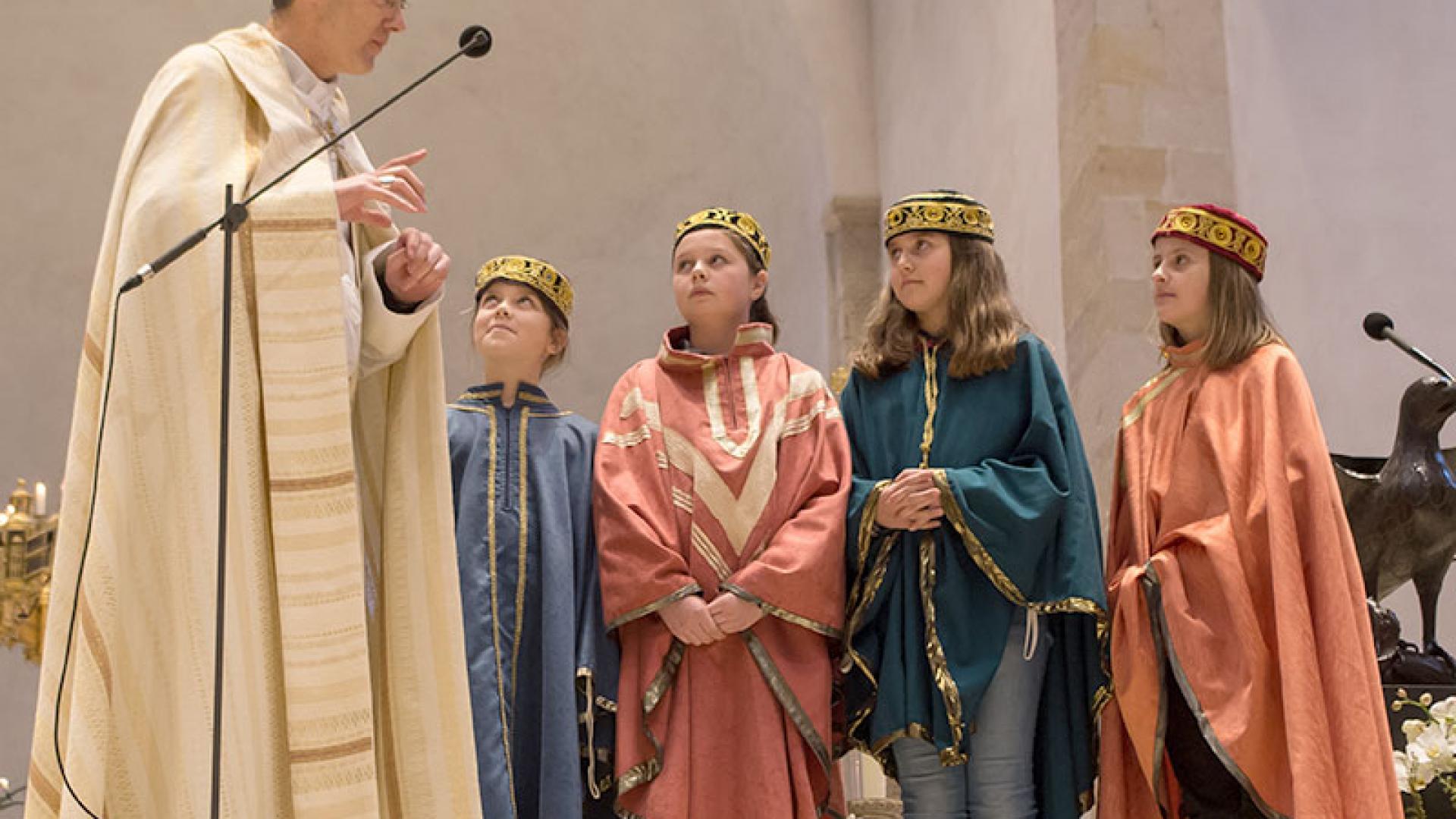 „Ihr habt Großartiges geleistet. Außerdem habt ihr auch viel für die Menschen bei uns im Bistum getan durch euren Besuch, durch eure freundlichen Gesichter und durch euren Gesang. Ihr habt Menschen zusammengebracht und von Herz zu Herz angesprochen“, begrüßte der Bischof die Sternsinger. In seiner Predigt betonte er, dass sie in der Tradition der Heiligen Drei Könige stehen, die sich vom Kind in der Krippe überraschen ließen. Genauso hätten sie die Menschen durch ihren Besuch überrascht und sich auch von ihnen überraschen lassen. „Wenn uns bewusst wird, dass jeder von uns eine wunderbare Überraschung für den anderen ist, und wir uns auch von den anderen überraschen lassen, dann werden wir alle zu Königen und Königinnen. Dann sind wir Könige im Herzen. Das wünsche ich jedem von euch.“