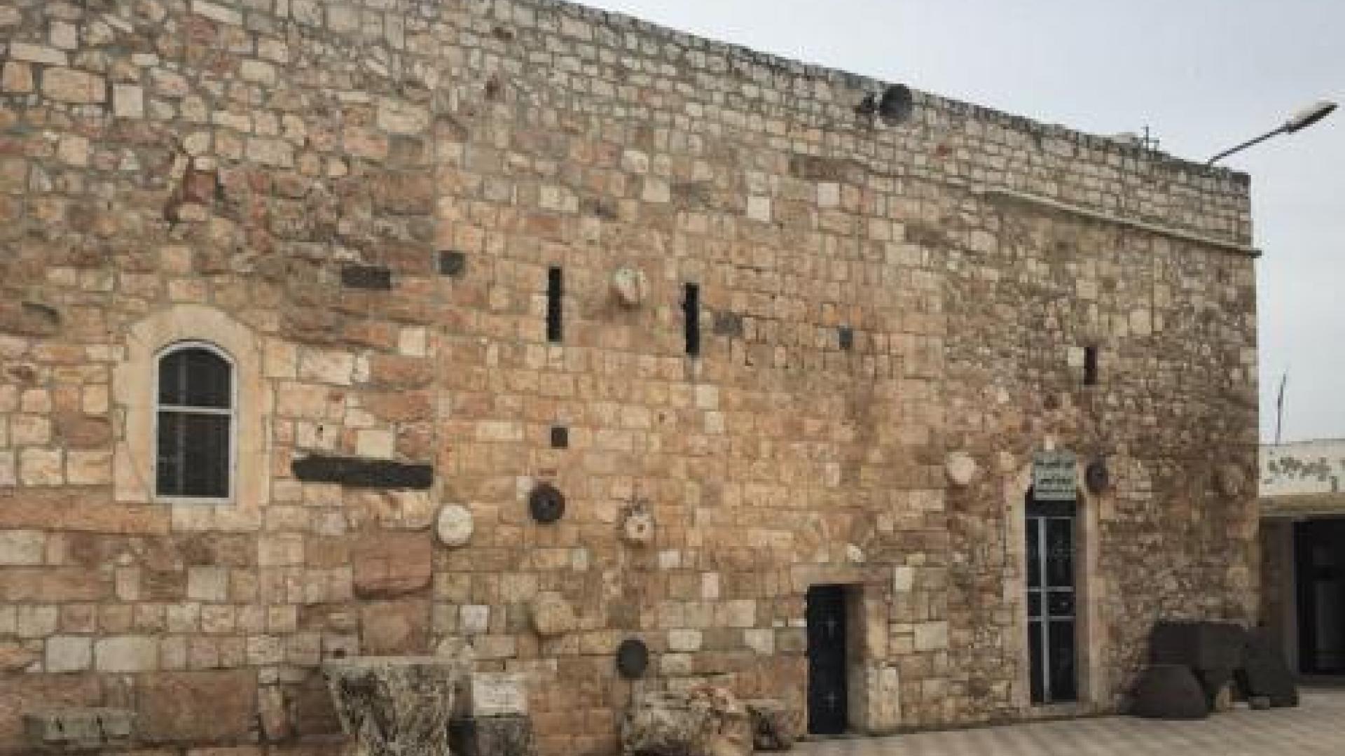 Flaha weist auf die antiken Säulenreste nahe der Kirchenmauer. Der bauliche Übergang des ursprünglichen Tempels zur neuen Kirche ist gut zu sehen. Von der Kirche führe ein unterirdischer Gang zu nahezu jedem Haus in der Altstadt von Mhardeh, erklärt Flaha. Die Christen seien oft in Gefahr gewesen, das alte Tunnelnetz habe sie geschützt. Die Türen von "Sayda Maria" sind verschlossen. Der Pfarrer sei unterwegs, um Familien zu besuchen, sagt ein Arbeiter, der das alte Kirchengestühl restauriert.