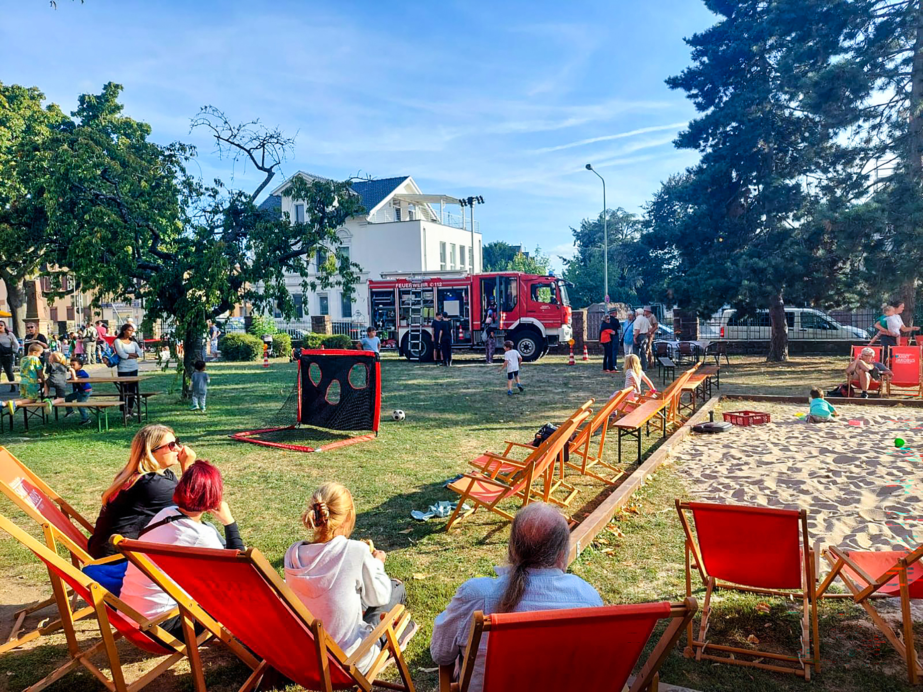 Rund um die Kirche St. Mauritius in Frankfurt-Schwanheim ist oft viel Trubel. Die Kirche ist eine Familienkirche. Hier haben die Jugendverbände ihr Zuhause. Auf dem Gelände leben Wachteln, die von Familien versorgt werden. Besonders beliebt ist das wöchentliche Spielplatz-Café auf dem Außengelände. Um die 50 Familien tummeln sich auf der Grünfläche um die Kirche. Ein Team von Ehrenamtlichen schenkt Kaffee aus. Dazu gibt es Kuchen zu einem günstigen Preis. Auch viele ältere Menschen aus dem Stadtteil kommen dorthin.